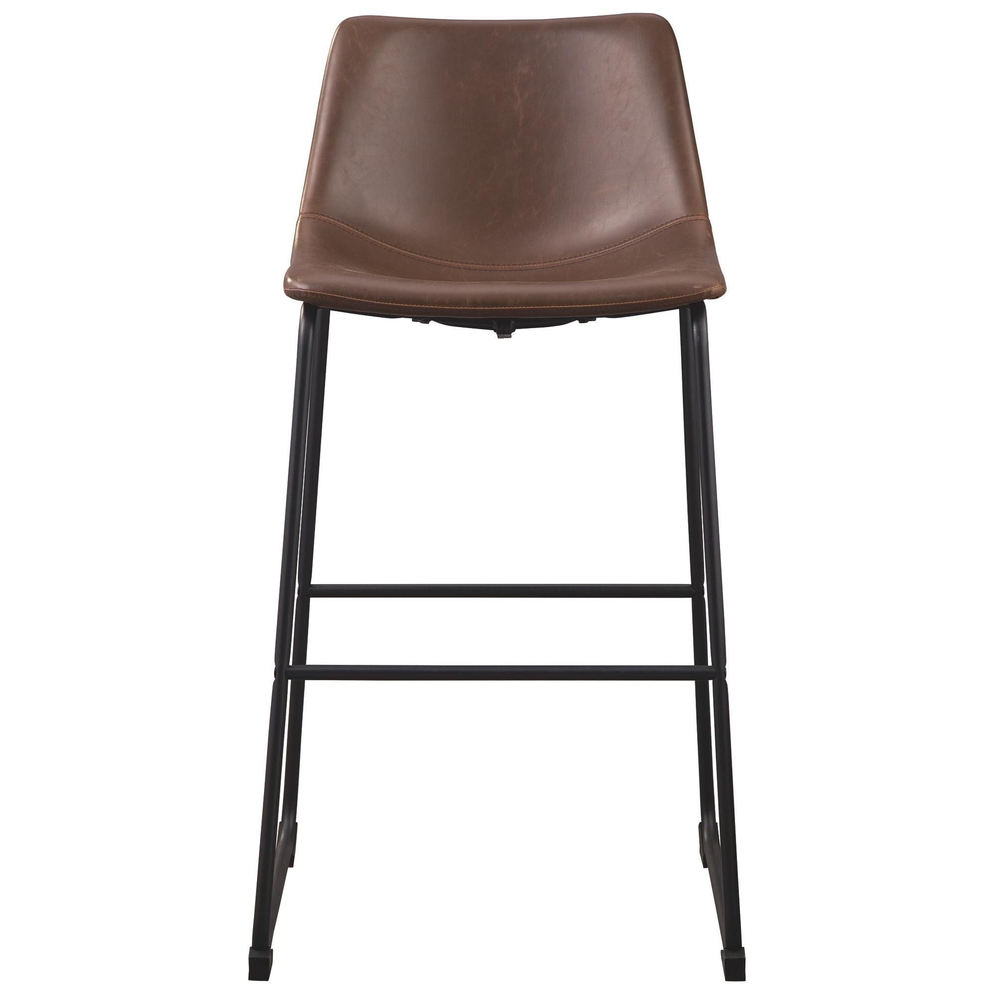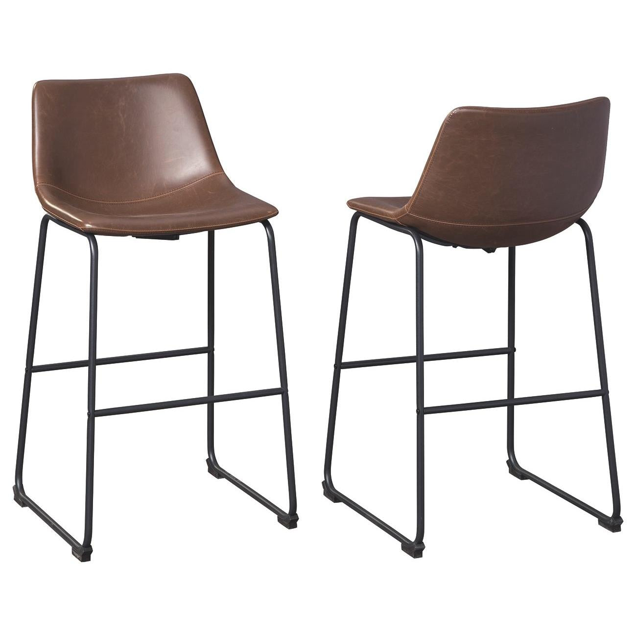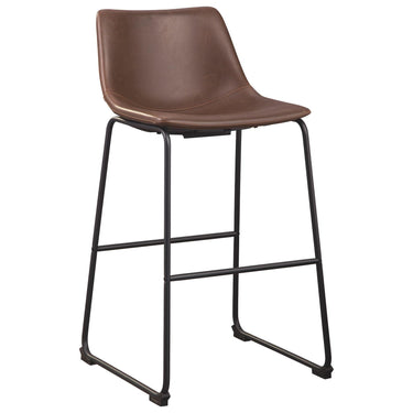 With its distinctive contoured bucket seat and tubular metal base, this bar stool serves up a fresh twist on mid-century inspired style. Faux leather upholstery has a charming medium brown tone. What a timeless look for eat-in kitchens and casually cool dining rooms.