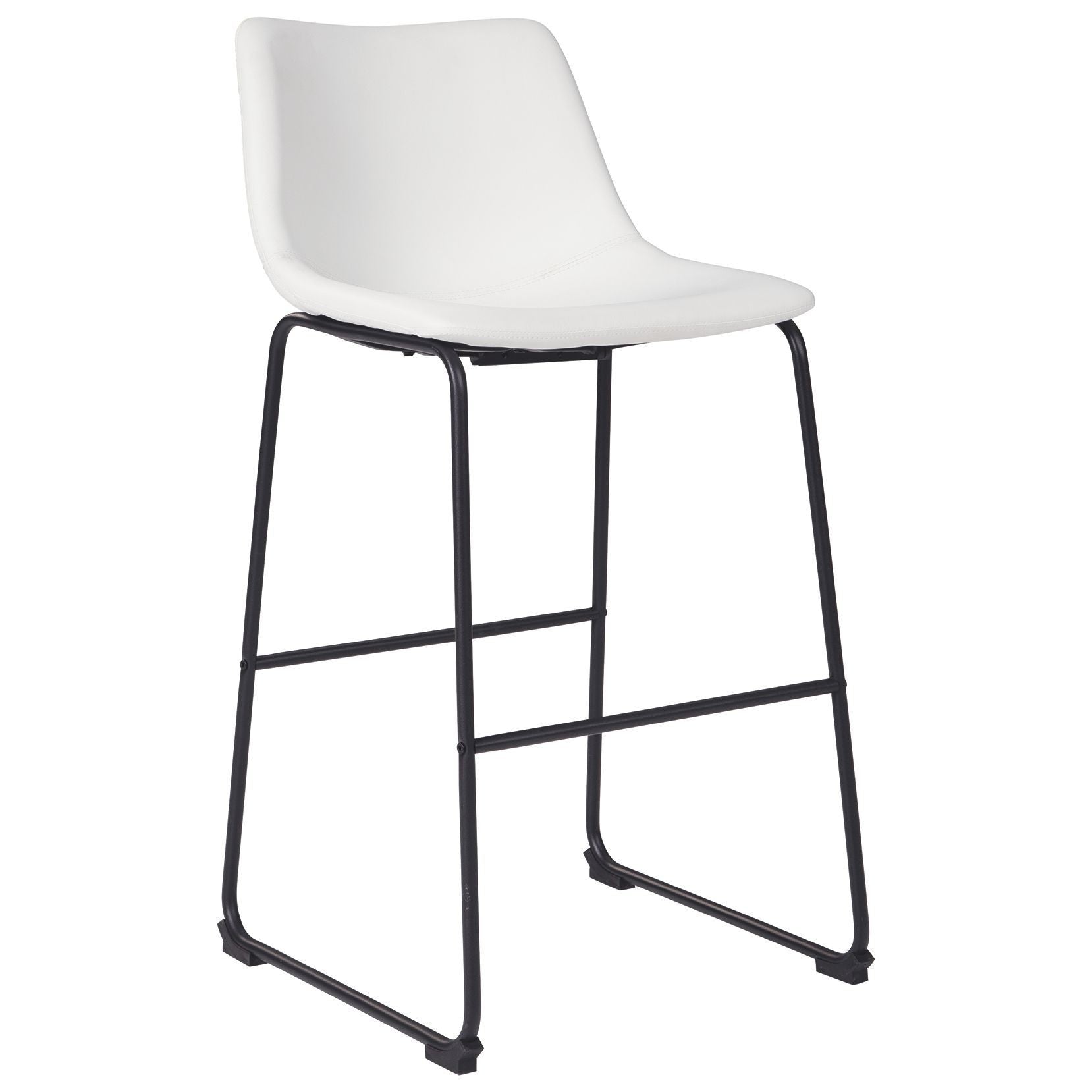 With its distinctive contoured bucket seat and tubular metal base, this bar stool serves up a fresh twist on mid-century inspired style. Faux leather upholstery has a charmingly vintage tone. What a timeless look for eat-in kitchens and casually cool dining rooms.