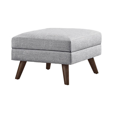 Breathe fresh air into a contemporary space. this stylish ottoman brings a hint of mid-century modern flavor and sweet character. wrapped in light grey upholstery, it offers a neutral hue to blend with a variety of palettes. multiple uses create a resting spot for tired feet as well as a substitute for a coffee table. slant legs with a dark finish complete an eye-pleasing design.