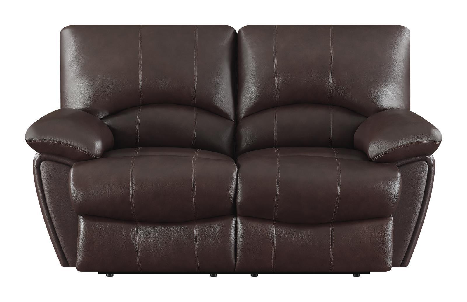 Comfortable and sleek, this stunning motion loveseat is great for a small living room. full of stitched details, the loveseat offers an elegant feel. constructed with relaxation in mind, the plush cushioning is showcased in kidney support backs. relax with the built-in recliners on each seat. warm up any space with the rich chocolate fabric.