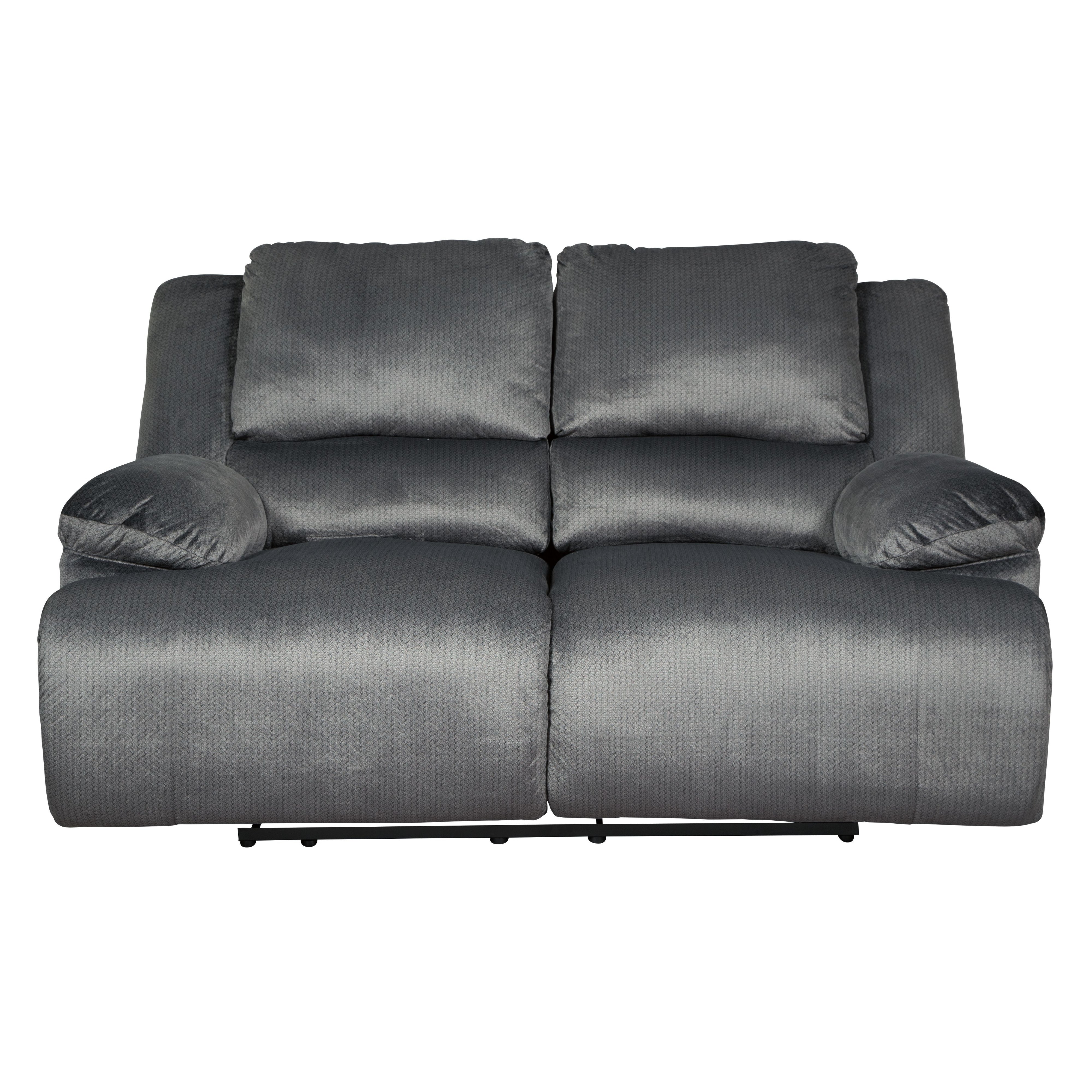 Large-scale comfort is yours with the Clonmel reclining loveseat. With supremely padded back, seat and arm cushions, it's the hero for ultimate relaxation. Microfiber upholstery is welcoming, soft and luxuriously covers the extra-wide seats. Recline back and kick up your feet to bolster your comfort level even more.