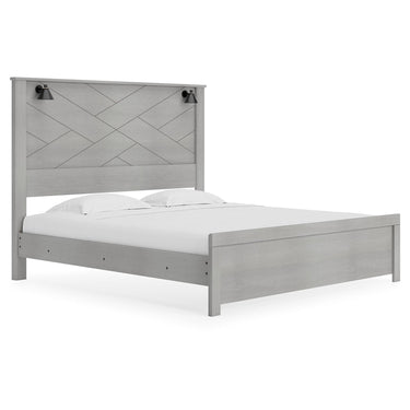 Cottonburg - Light Gray/white - King Panel Bed With Sconce Lights