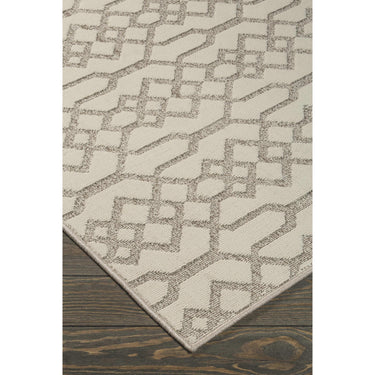 Roll out casual style with this medium-sized accent rug. Its repeated linked chain pattern is intricate, yet easy to love. Natural and cream colors found in the design provide neutrality-great for matching it to any room's decor.