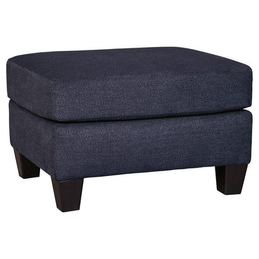 Upholstered in a striking midnight blue fabric with a soft brushed feel, this ottoman is perfect for resting feet after a long day. Simplicity and comfort make this the ideal living room addition.