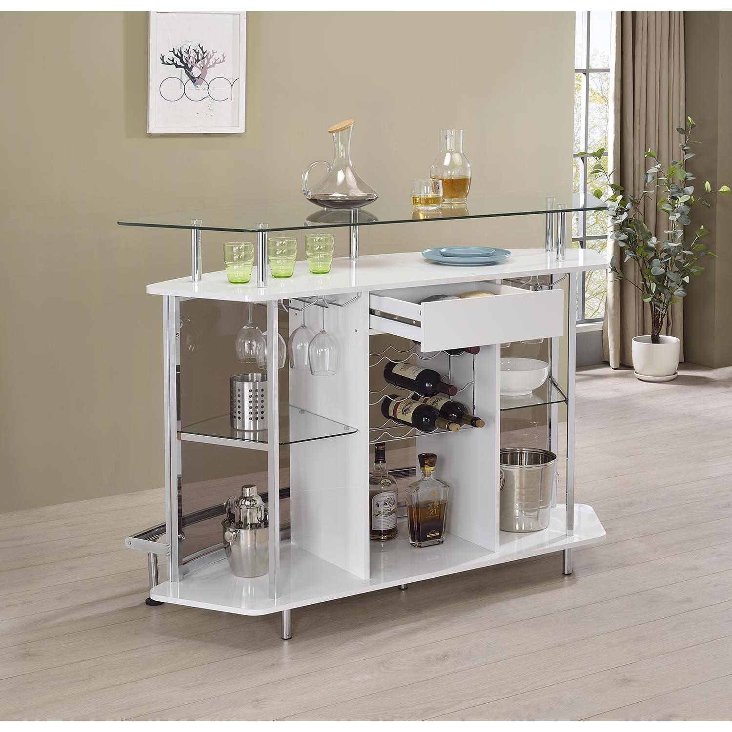 Crescent - Shaped Glass Top - Bar Unit With Drawer - White