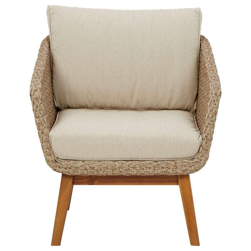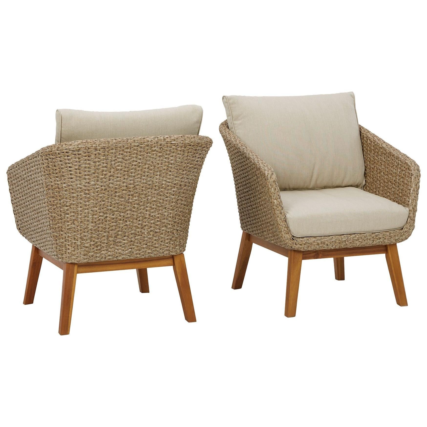 Turn your outdoor space into a high-style hideaway with this 2-piece outdoor lounge chair set. Clearly for those with an eye for fine design, this sleek, chic outdoor furniture set is quality made to withstand the elements. What looks like traditional wicker is the next best thing: resin wicker woven over rust-proof aluminum for exceptional durability and worry-free living. Acacia wood legs and easy-breezy Nuvella�/olefin wrapped cushions enhance its appeal.
