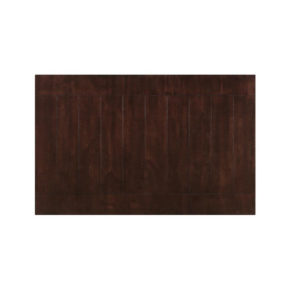 The dalila collection offers up a dining table that is casual yet refined. crafted from select hardwoods and oak veneers. finished in cappuccino for an appeal that works in a sunny, bright kitchen or a dusky, more intimate dining area. rectangular tabletop is spacious enough for lavish meals or cutthroat texas hold 'em. complete the set with chairs and a bench (sold separately) in enduring dark brown leather-like vinyl.