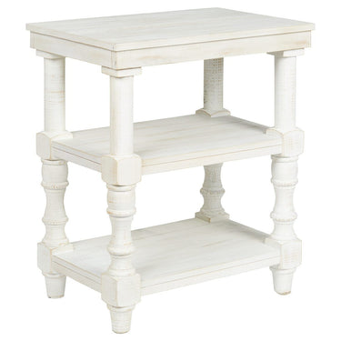 With its antique white finish, plank-effect styling and charming turned details, this accent table is sure to elevate the look and feel of a room. Whether you embrace traditional decor or fancy modern farmhouse style, this 3-tier table will look right at home. And with USB device charging, this accent table is right up to speed with your high-tech lifestyle.