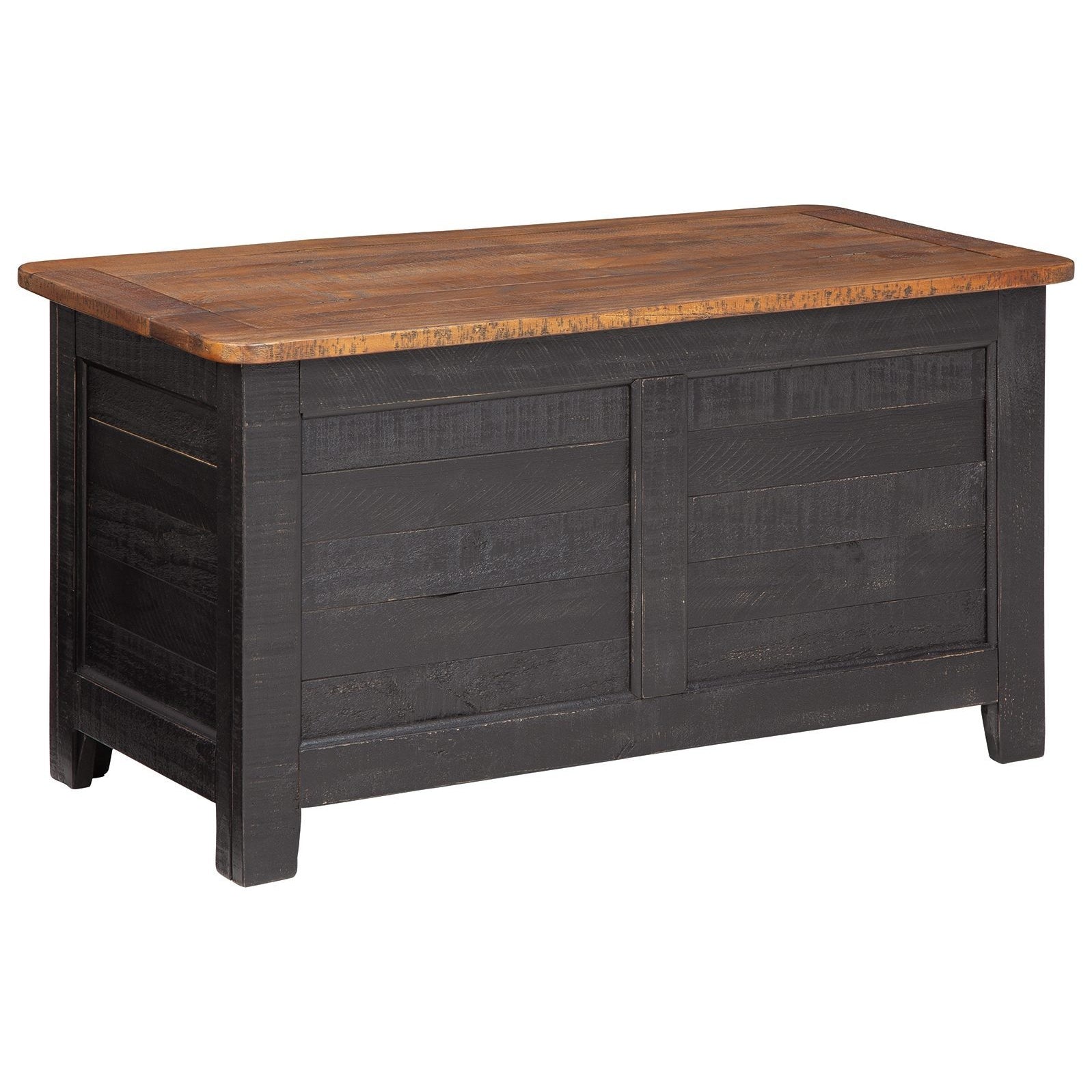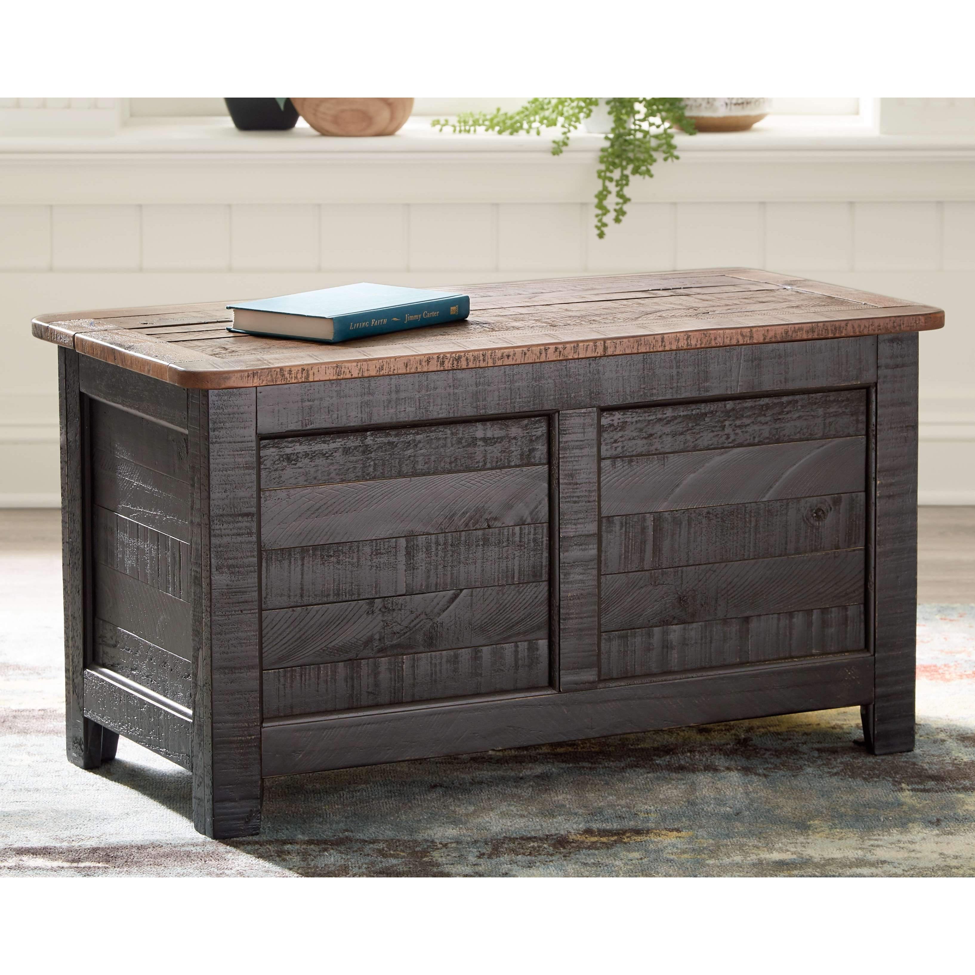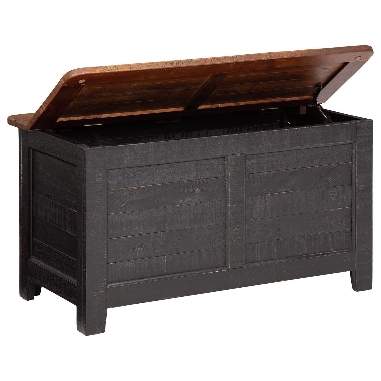 Storage solutions are made simple with this hinged-top storage trunk. In distressed brown and black finish, the storage trunk oozes casual glam. A distressed planked effect on the front and sides brings subtle texture that gives this piece a little extra flair.