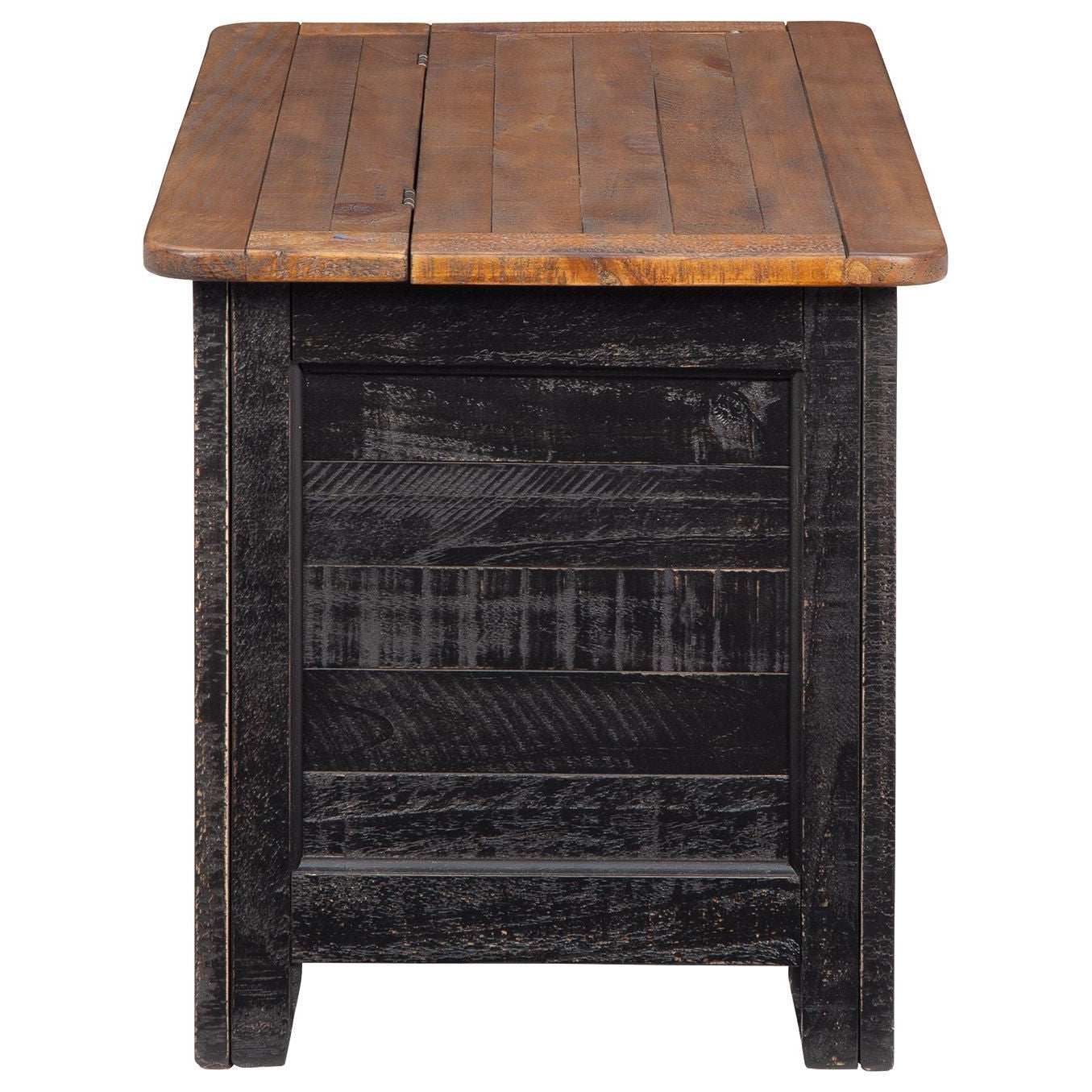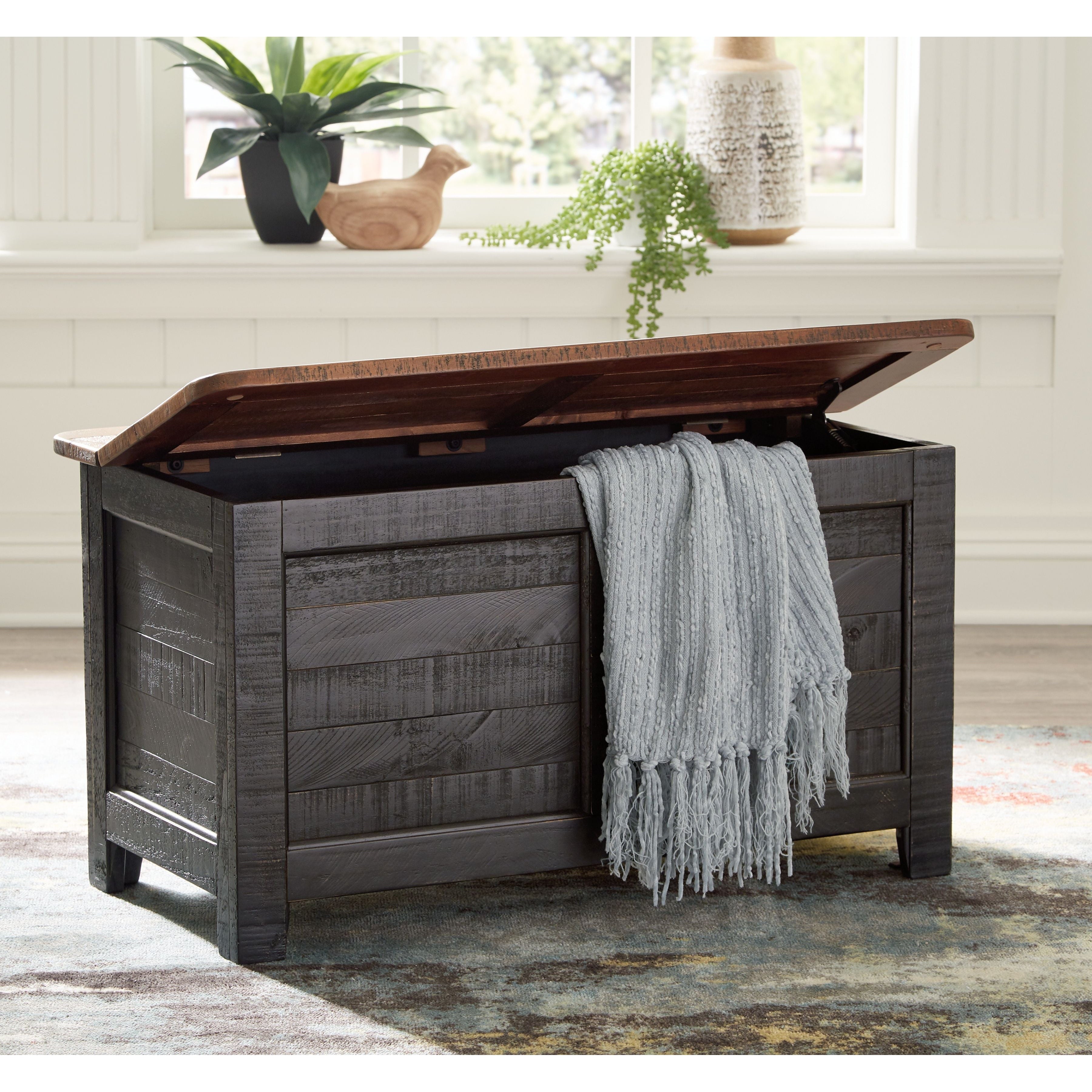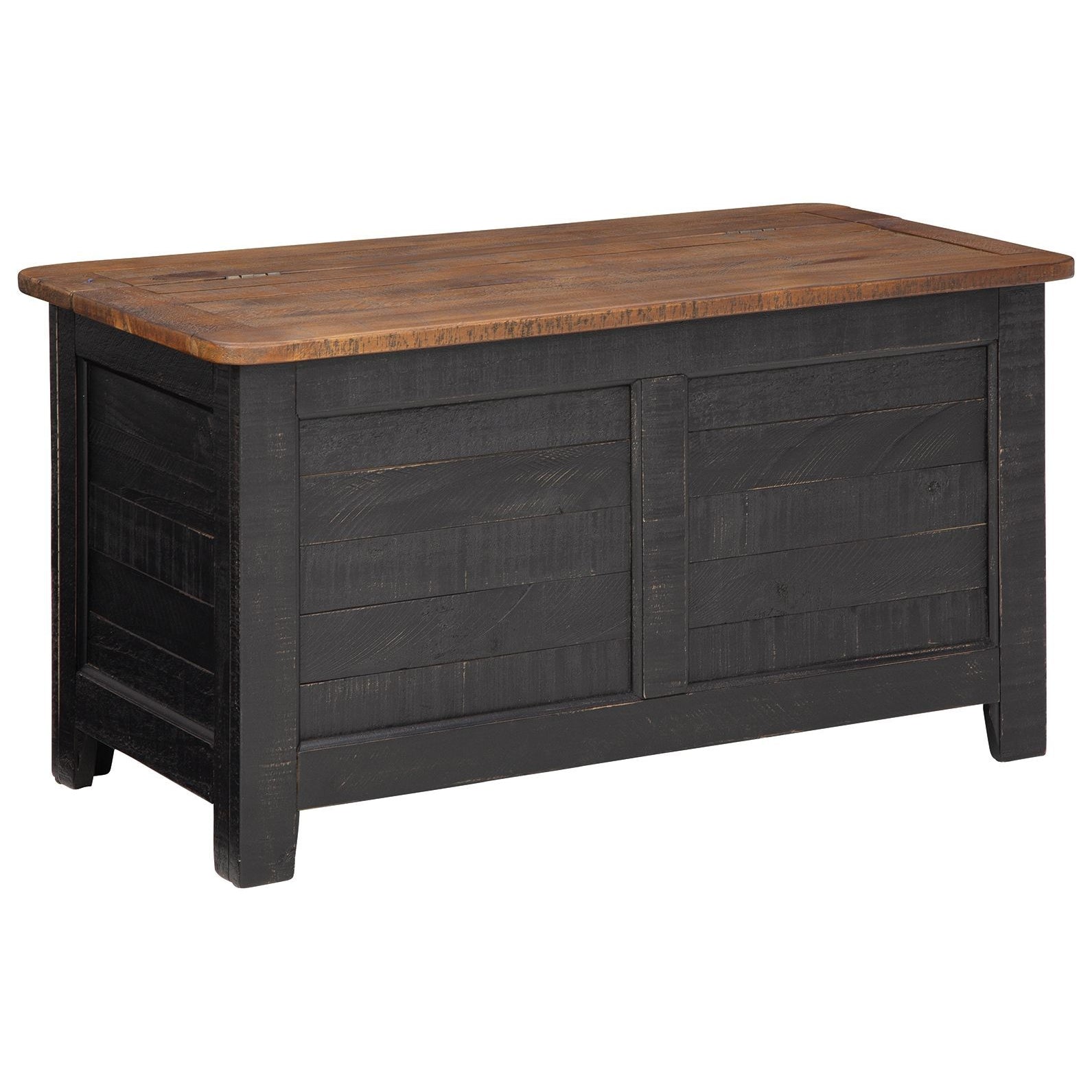 Storage solutions are made simple with this hinged-top storage trunk. In distressed brown and black finish, the storage trunk oozes casual glam. A distressed planked effect on the front and sides brings subtle texture that gives this piece a little extra flair.