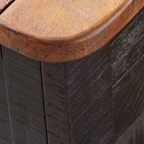 - Made of veneer, solid and engineered wood in distressed black and brown finish