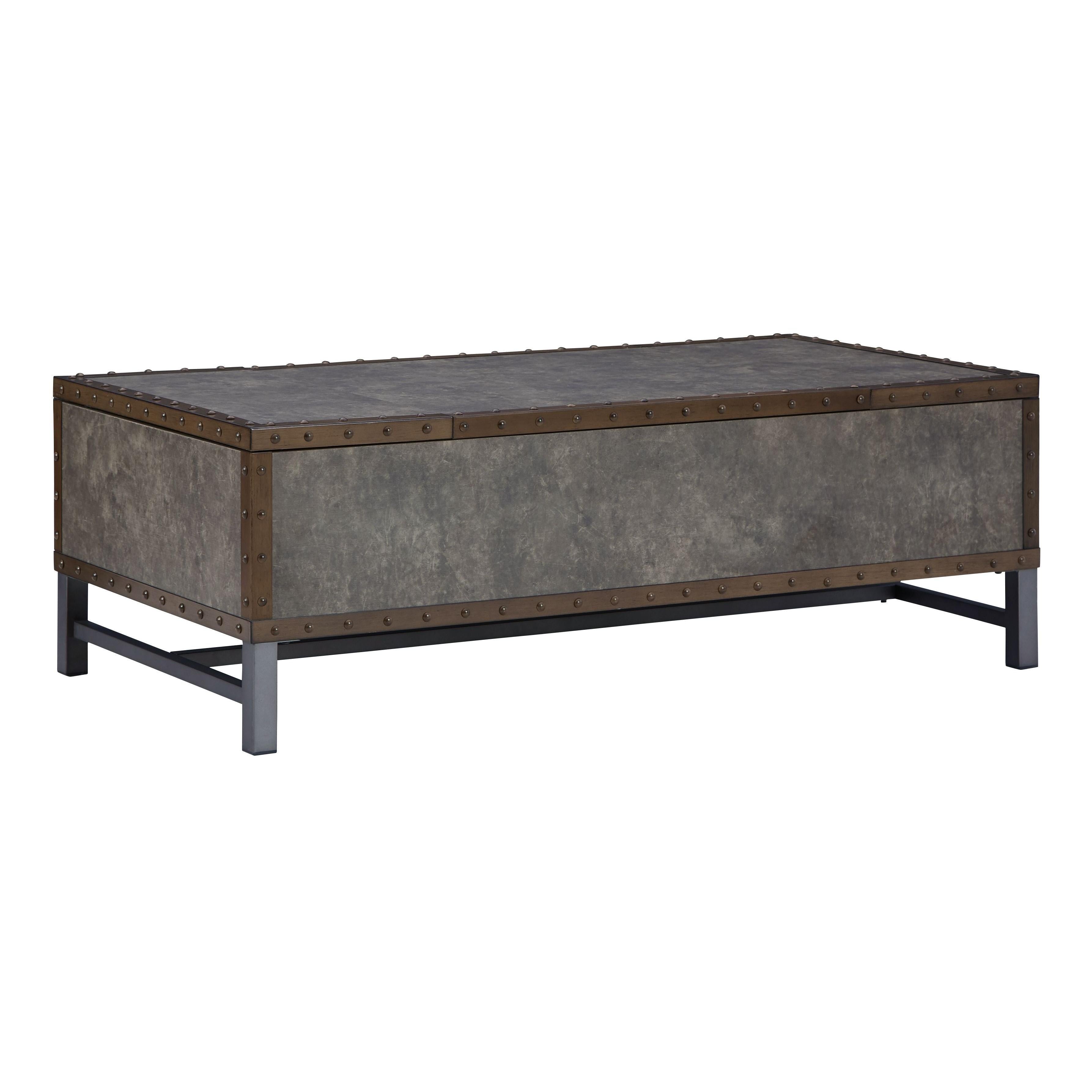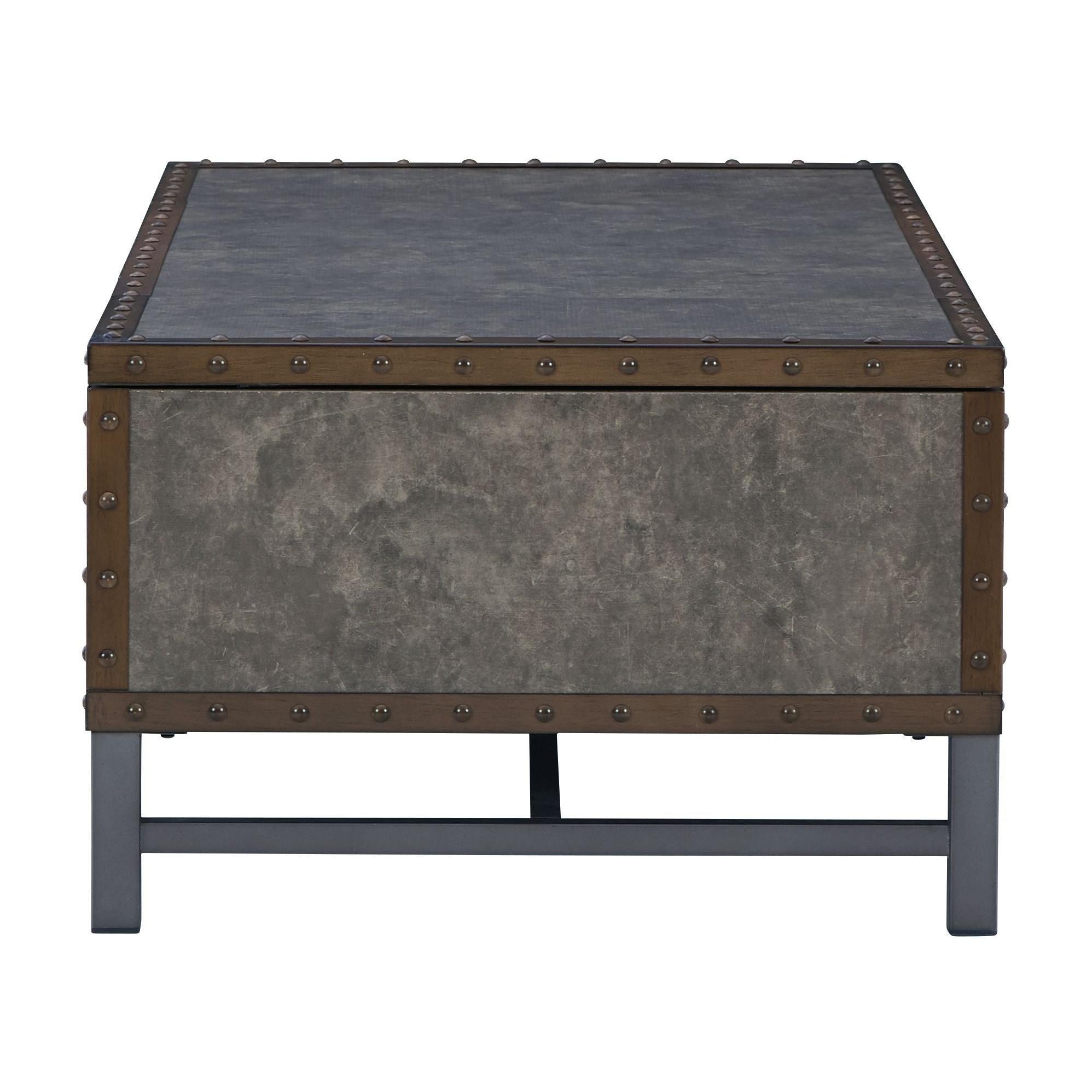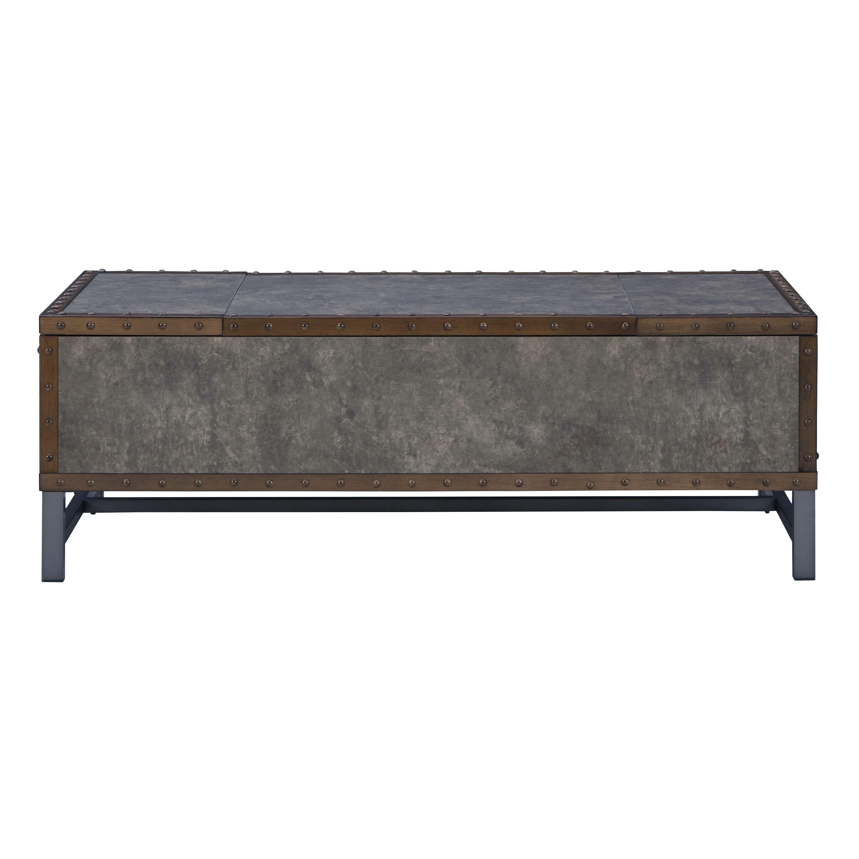Reinvented for the here and now, this lift-top coffee table rocks vintage industrial design with a traditional vibe. Its metal accent trim and bronze-tone metal base frame are ready to embrace the modern demands of everyday life. Two spacious storage bins provide additional storage, while the center lift top transforms into a casual work center or extra dining space when needed.