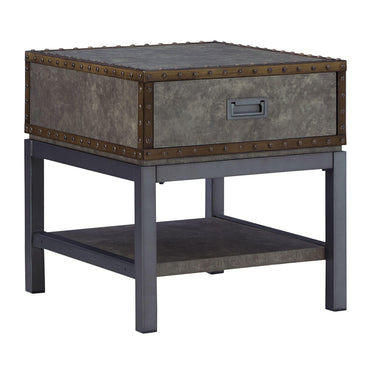 Reinvented for the here and now, this end table rocks vintage industrial design with a traditional vibe. Its metal accent trim and bronze-tone metal base are ready to embrace the modern demands of everyday life. A lower shelf and a fully finished drawer provide plenty of storage, while the built-in power supply with dual USB charging keeps your devices charged up and ready.