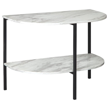 Discover the epitome of urban elegance with this side table. Made for city living, this table is set on a metal base to provide open space and create the illusion of more room in your room. The faux Carrara marble adds a chic, sophisticated look to this very minimalist small space solution.