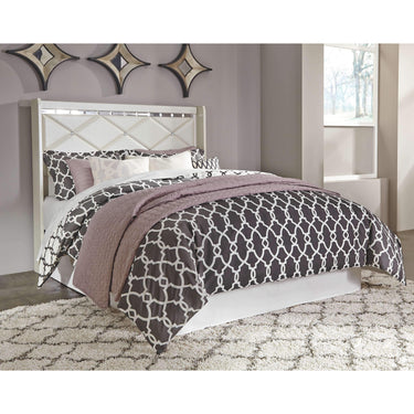 Love sleek and bold contemporary style? Live the dream with this queen panel headboard. Eye-catching details include 3D pressed design with beveled mirror banding and faux crystal accents for an added touch of sheen and shine. A clean-lined profile balances the look with sheer simplicity.