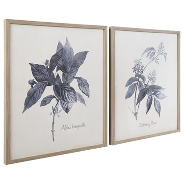 Classic botanical drawings in shades of blue and tan elevate the decor in any space. Easy to hang, this set of two gallery-wrapped canvases add an air of quiet beauty to your walls. Perfect for living rooms, bedrooms or office space, this art creates a lovely atmosphere wherever you hang it.