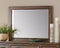 Seamlessly blended together, the clean lines and classic colors on this rectangular wood mirror are a beautiful centerpiece above a dresser or in a hallway. the frame celebrates modern design with simple lines in a vintage bourbon finish. add an extra touch of depth to any space with the slightly exposed wood grain. emit a refined sense of rustic charm with the sleek lines in the frame. open up a room with the warmth from the deep hues and crisp angles.