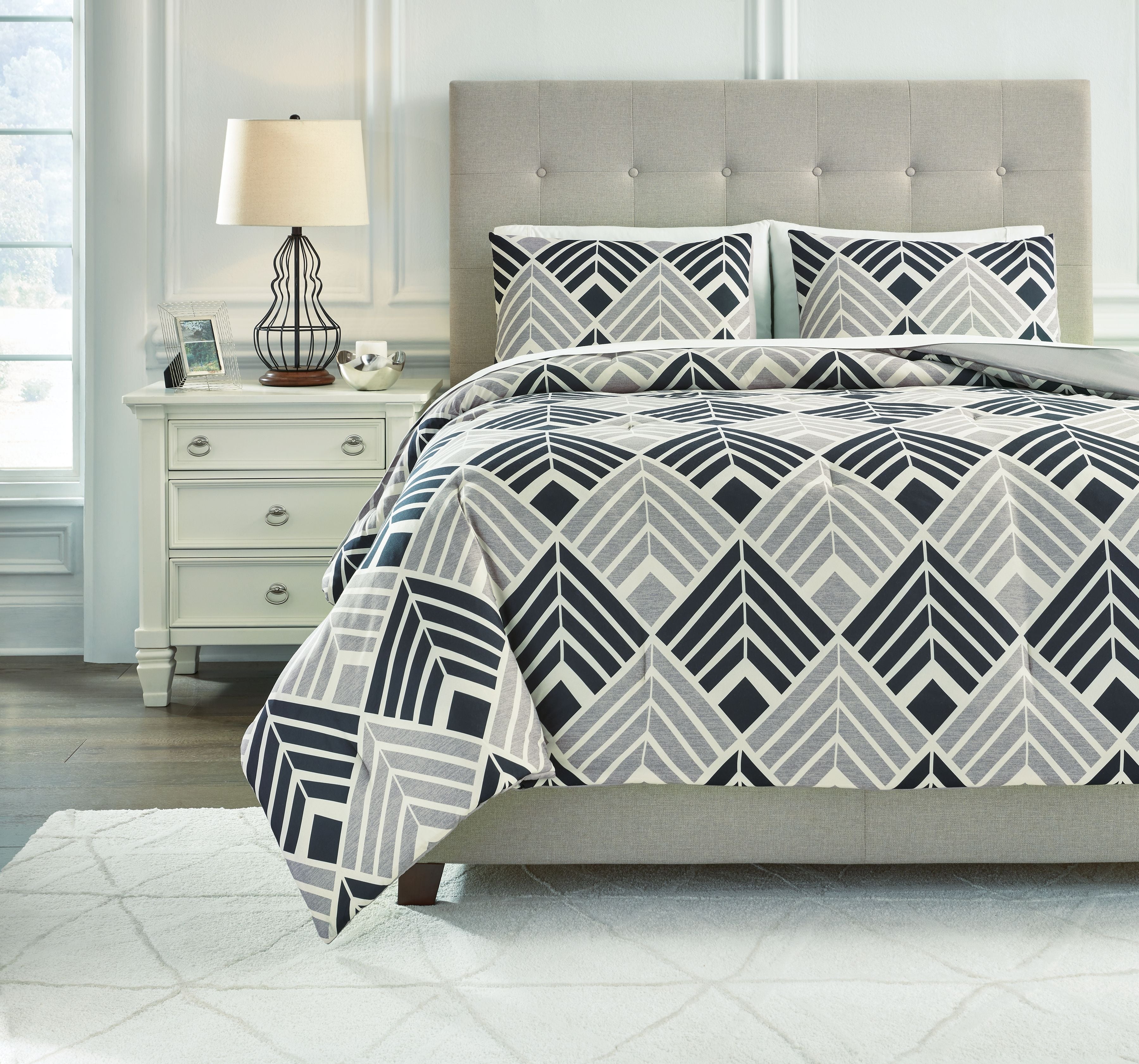 Ellowyn - Black/gray/bone - Queen Comforter Set