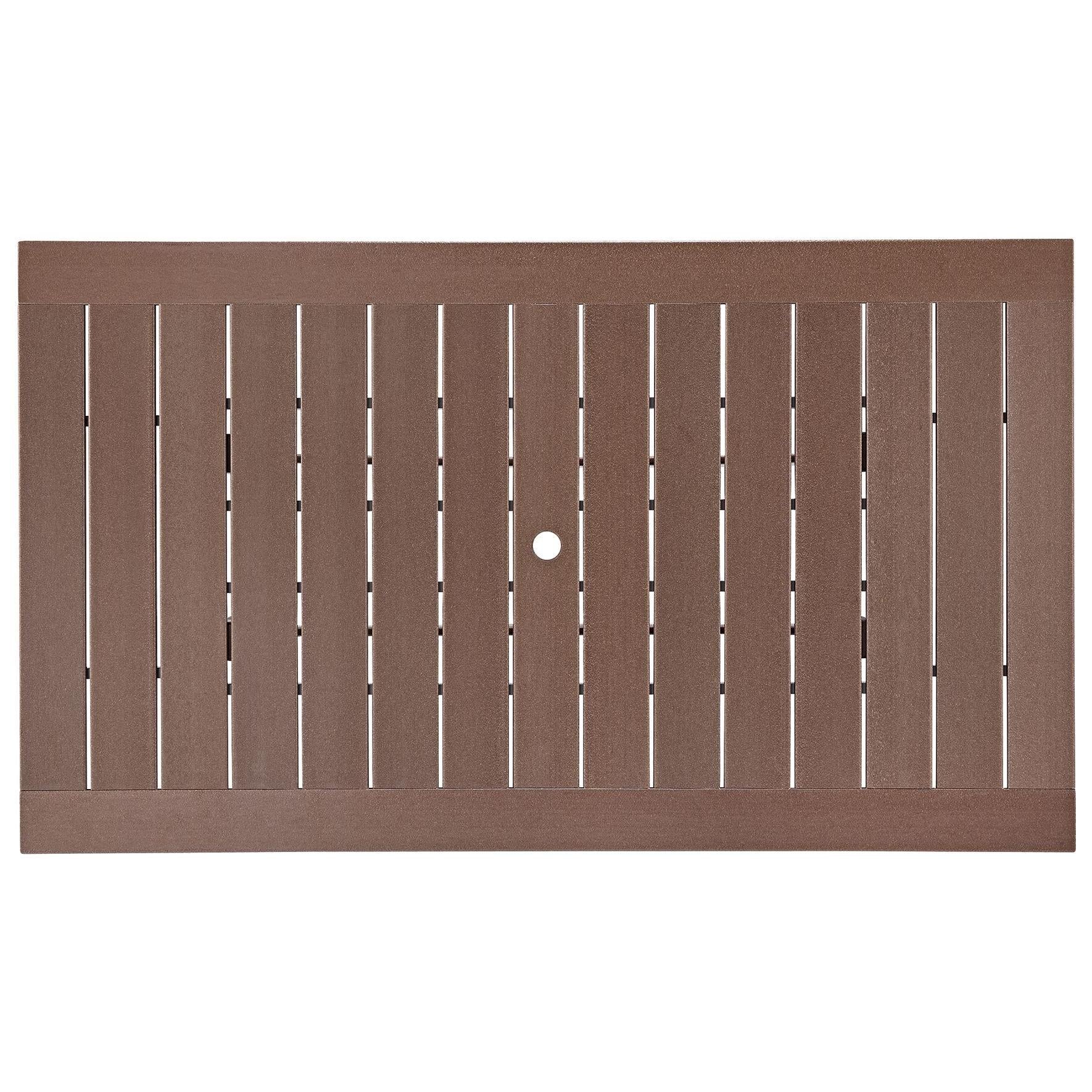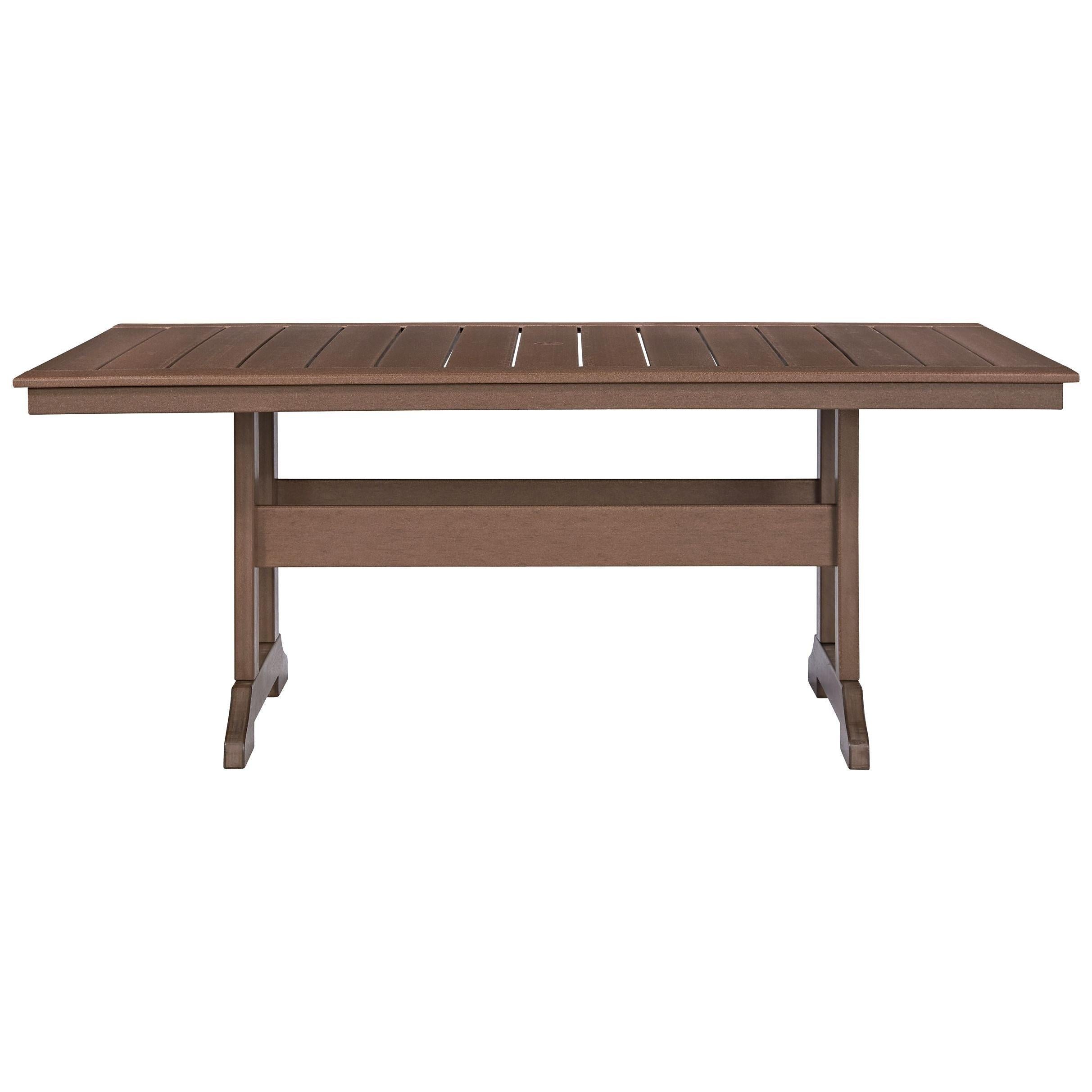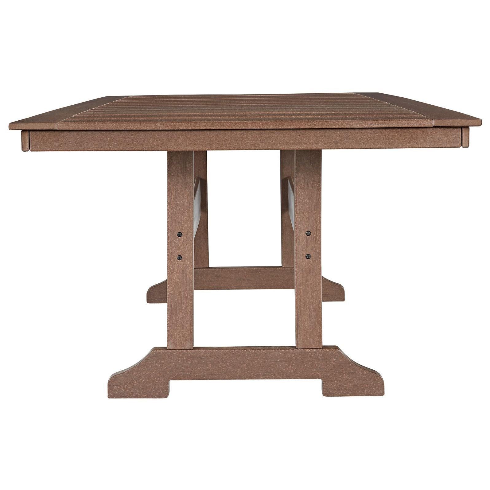Get back to nature with the relaxed styling of this outdoor dining table. Crafted of MEGA TUFF� HDPE material, it combines the exceptional durability and weather resistance you need with the "wood look"you love. Rest assured, the slatted tabletop sheds rainwater and is equipped with an umbrella hole so you can enjoy al fresco dining rain or shine.