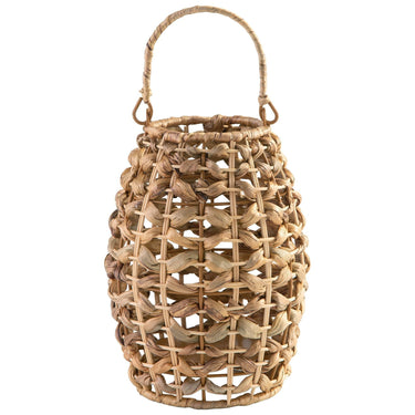 With its woven natural rattan and open-and-airy design, this lantern appeals to those turned on by a natural, bohemian sense of style. Holds one flameless pillar candle (not included).