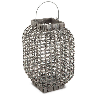 Complete the look of your restful retreat with this homey lantern. Its antiqued gray faux rattan filters the light of your candle (not included) to give a gentle glow to your space. When not in use, this chic indoor/outdoor piece rounds out your decor with its versatile style.