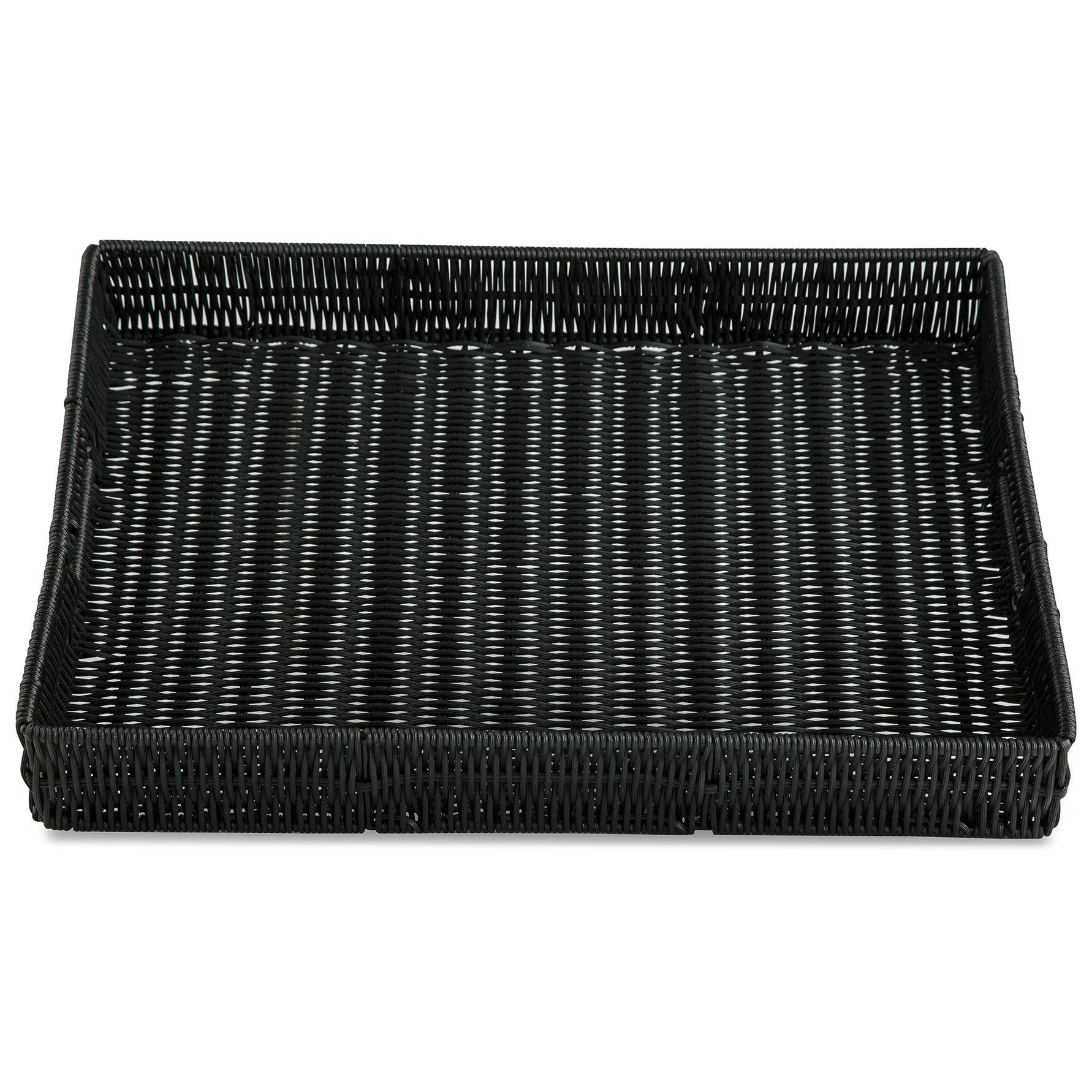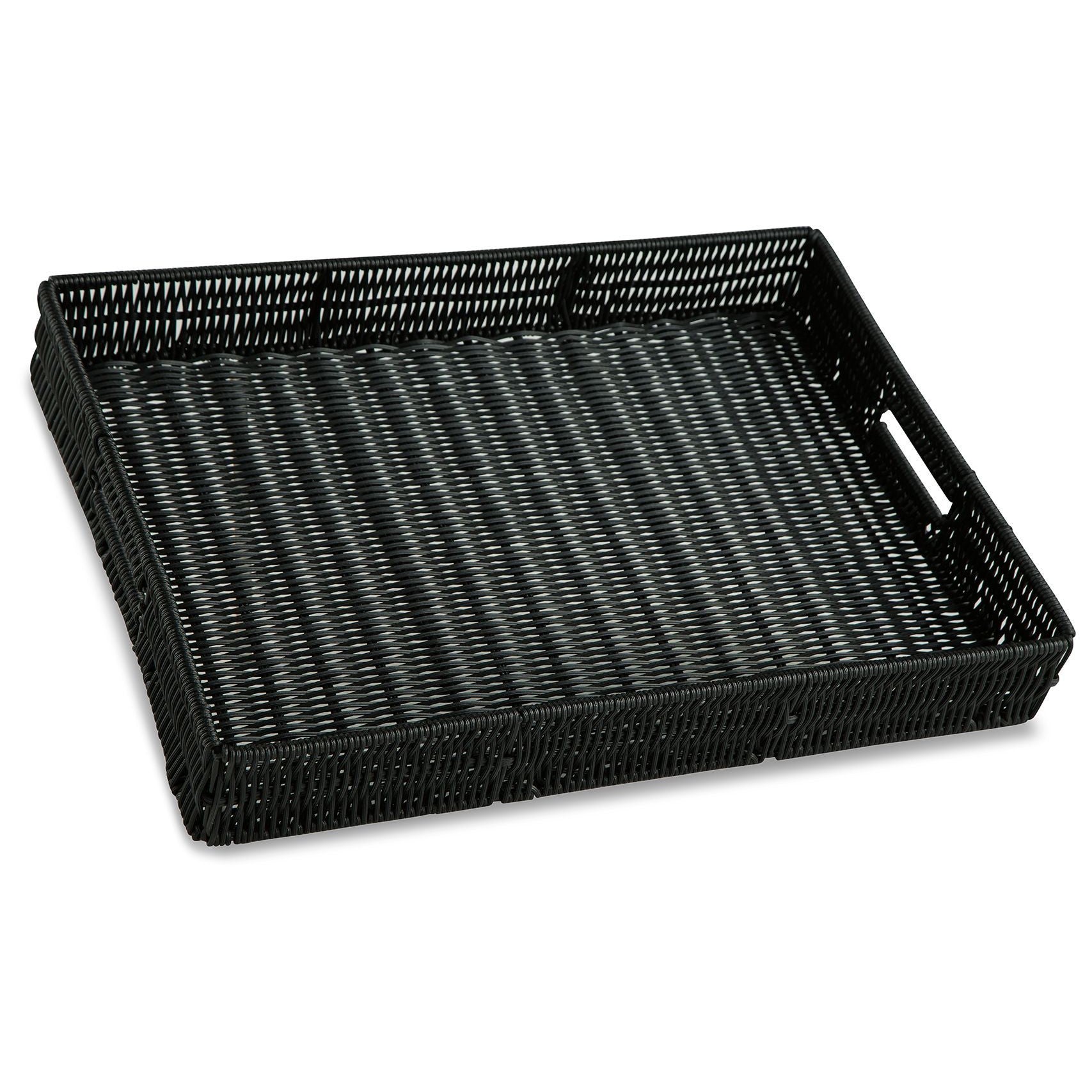 Complete the look of your restful retreat with this homey tray. Its black faux rattan acts as a versatile backdrop while holding other decorative elements. On its own, this chic indoor/outdoor piece punctuates your tabletop decor with its versatile style.