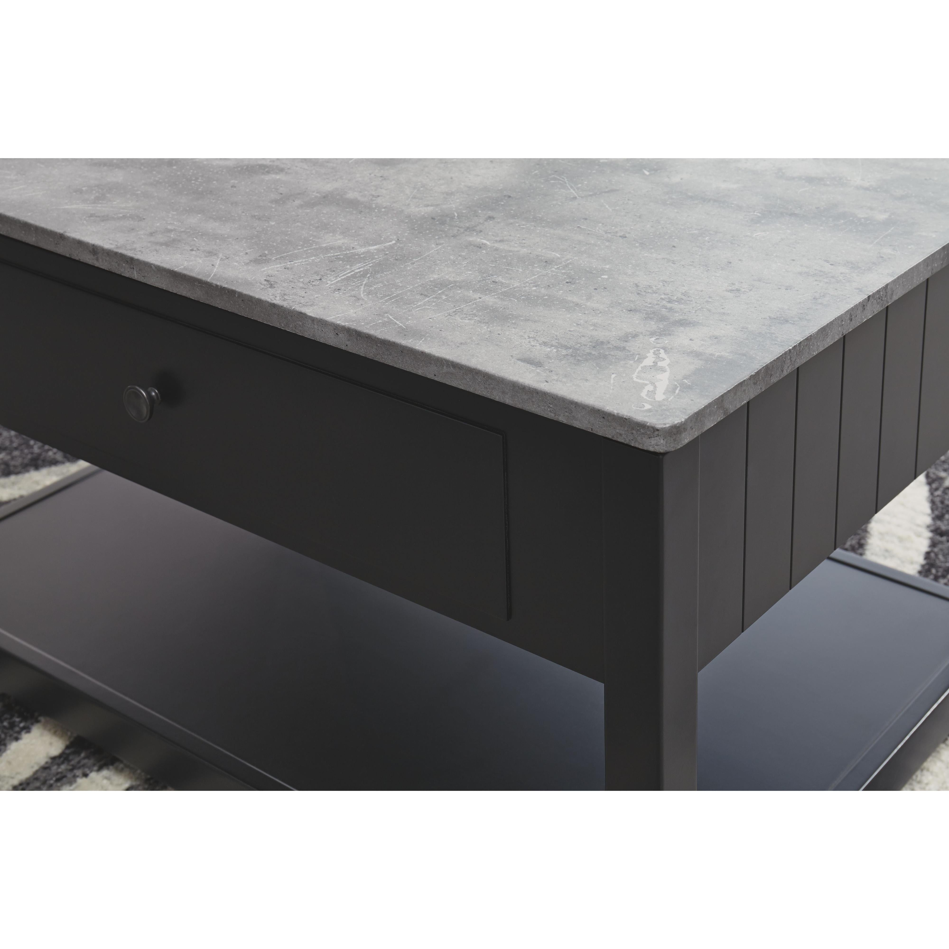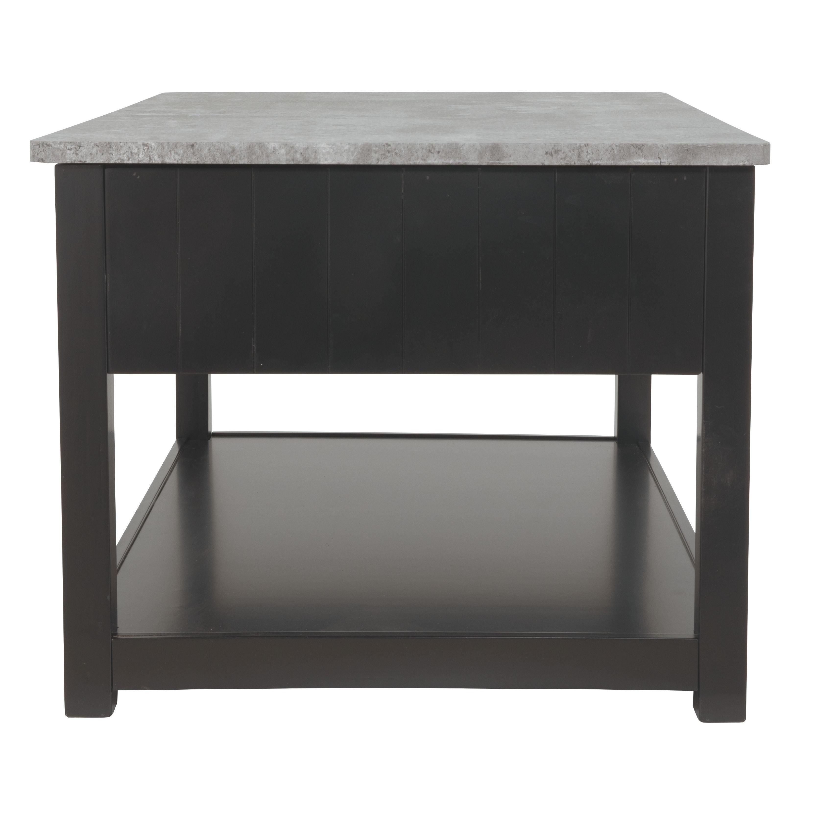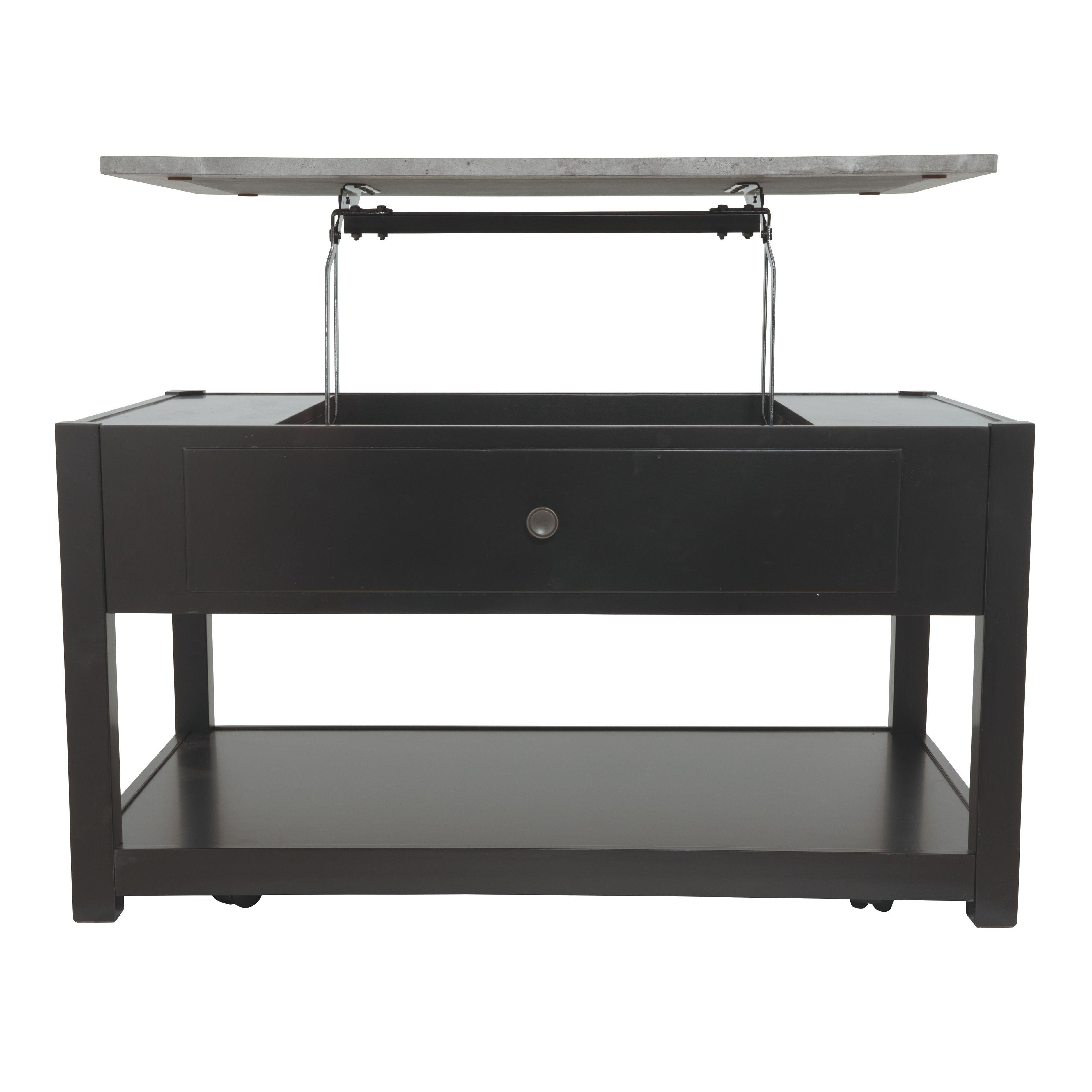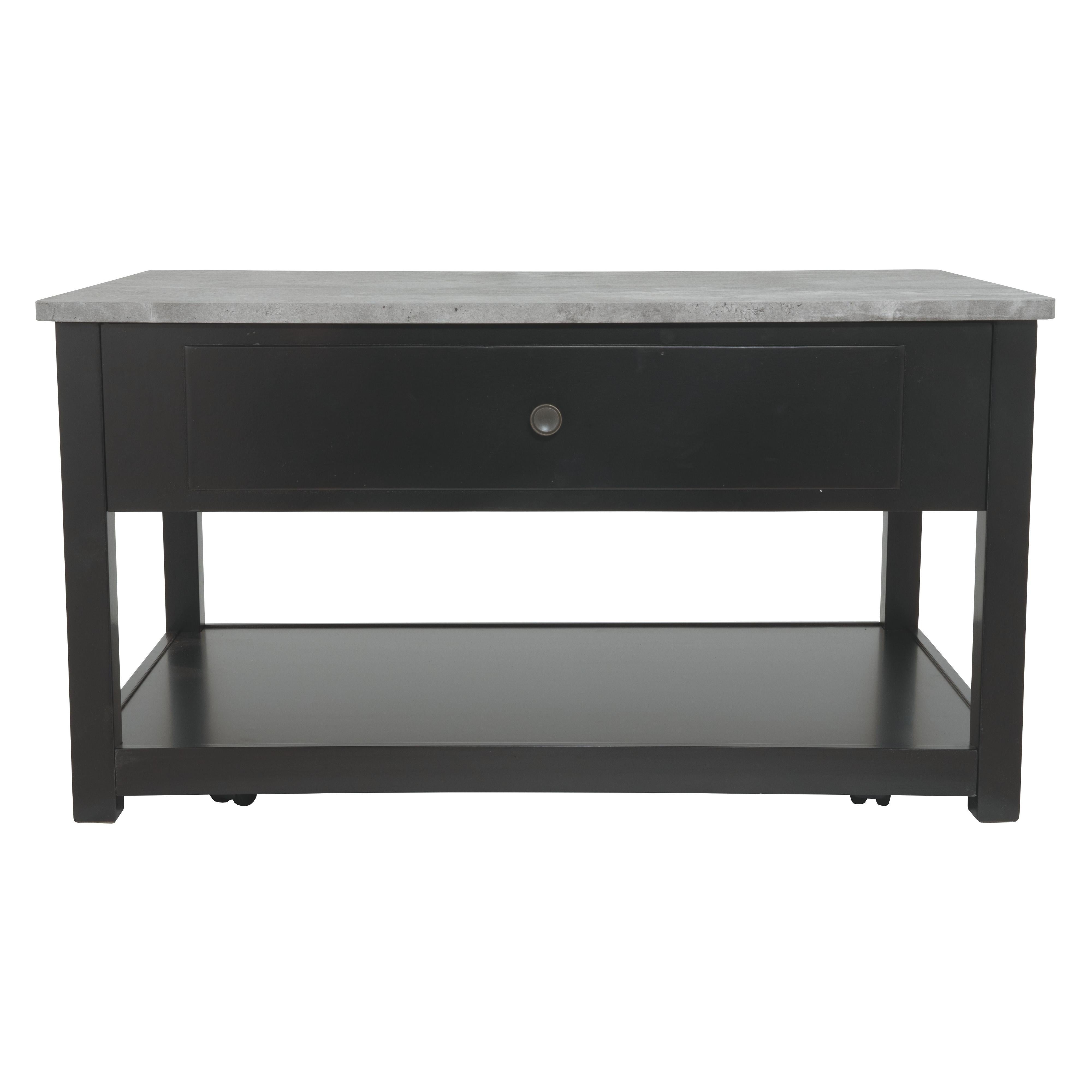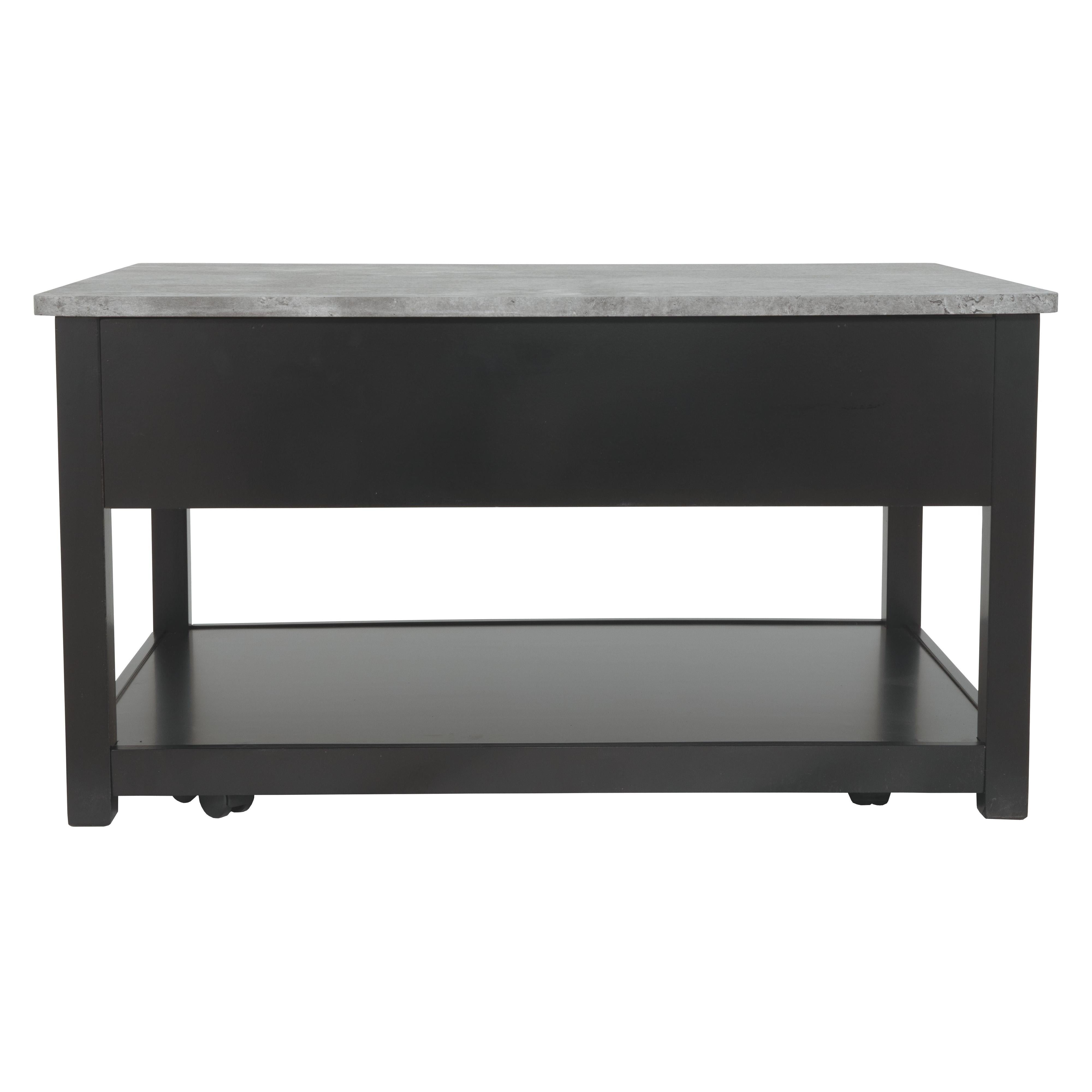 Pairing a faux marble top in gray with a brilliant black base, this lift top table makes a simply striking statement. A generously sized drawer adds to the form and functionality. Optional casters provide welcome flexibility.