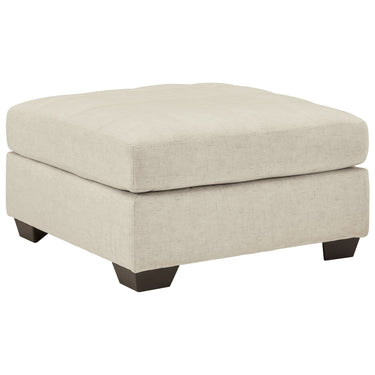 Destination: urban oasis. Elevate your design aesthetic with a chic look inspired by city living. Sleek, sultry and tailored to a T, this oversized accent ottoman lures with comfortably soft box cushions and dramatic jumbo stitching for fashion-forward flair. Wrapped in a parchment beige velvet-touch upholstery, the ottoman's blend of sophistication and kicked-back comfort appeals to a contemporary taste.