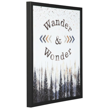 For your outdoor enthusiast or the deep contemplator, the wander and wonder forest design in shades of gray, brown and navy is sure to encourage the viewer. This conservation conscious framed art provides a natural warmth to complement your favorite space.