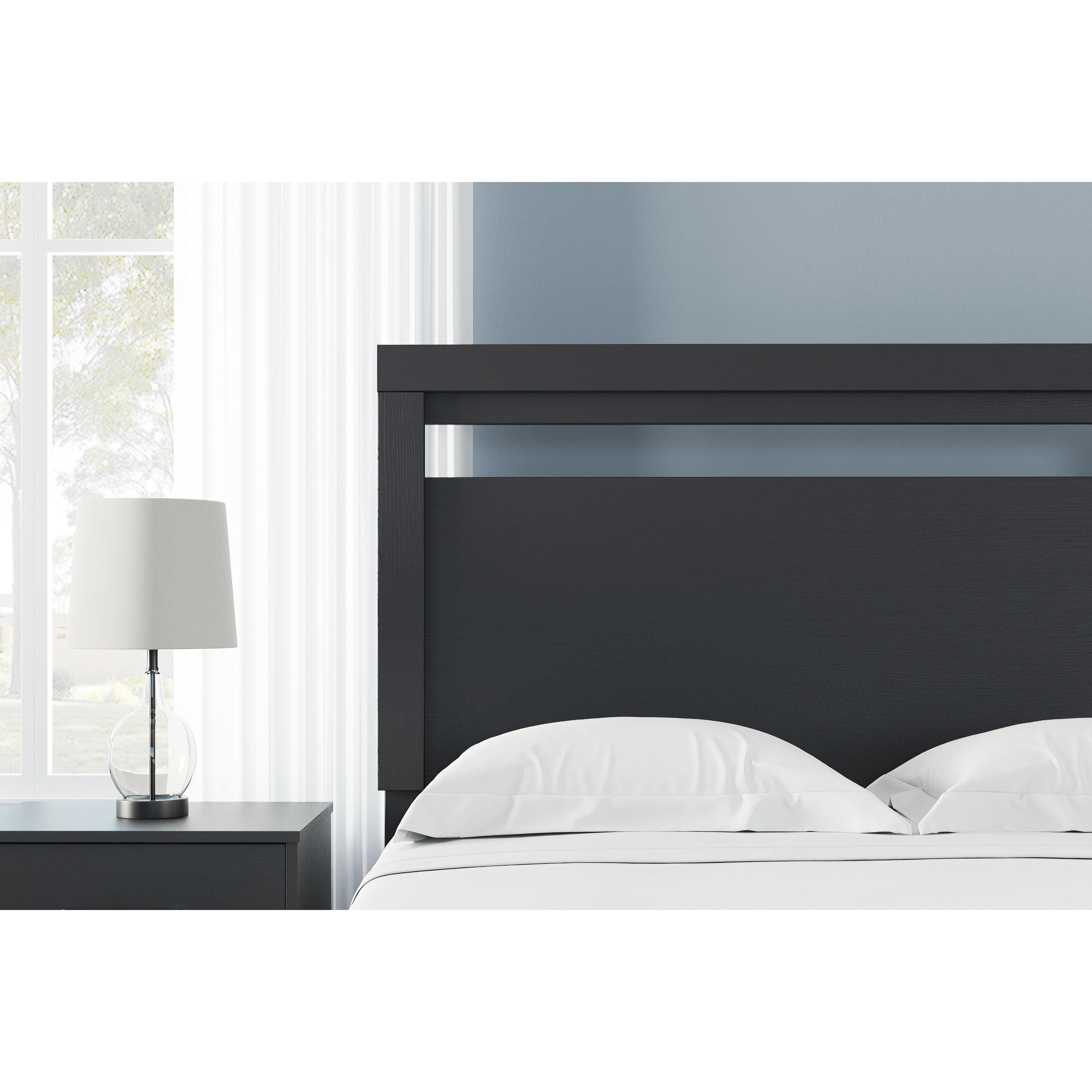 If you're a fan of clean, crisp and contemporary interiors, rest assured this full panel headboard suits you. Its linear profile is enhanced with a matte black finish with subtle replicated wood grain. The headboard's peekaboo cutout adds a cut-above element. Hard to believe such a high-style aesthetic can be so attractively priced.