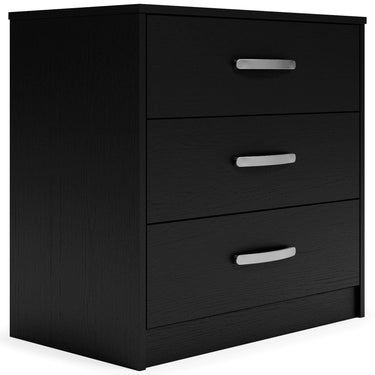 Practical and attractive, this chest blends seamlessly with modern decor and makes a smart addition to a bedroom. The three full-sized drawers slide easily on metal ball bearings and can be used to keep your clothes neat and organized. Sleek metal pulls in a brushed nickel-tone finish add to the streamlined aesthetic. Combine with other units in the collection to create a room that's smart and stylish.