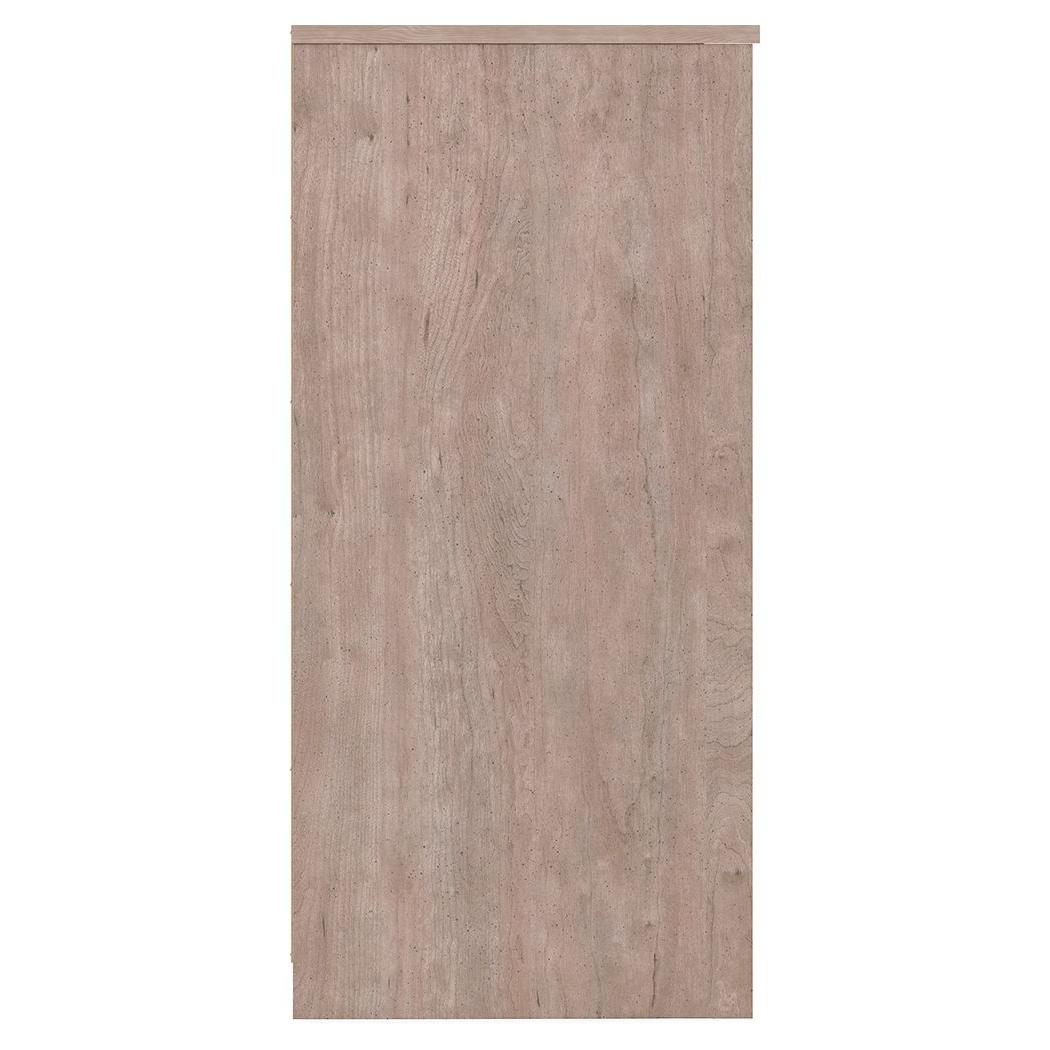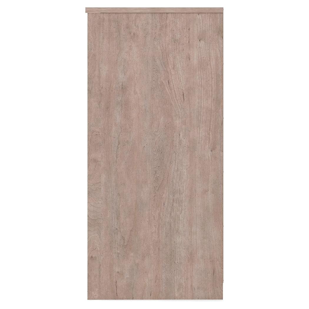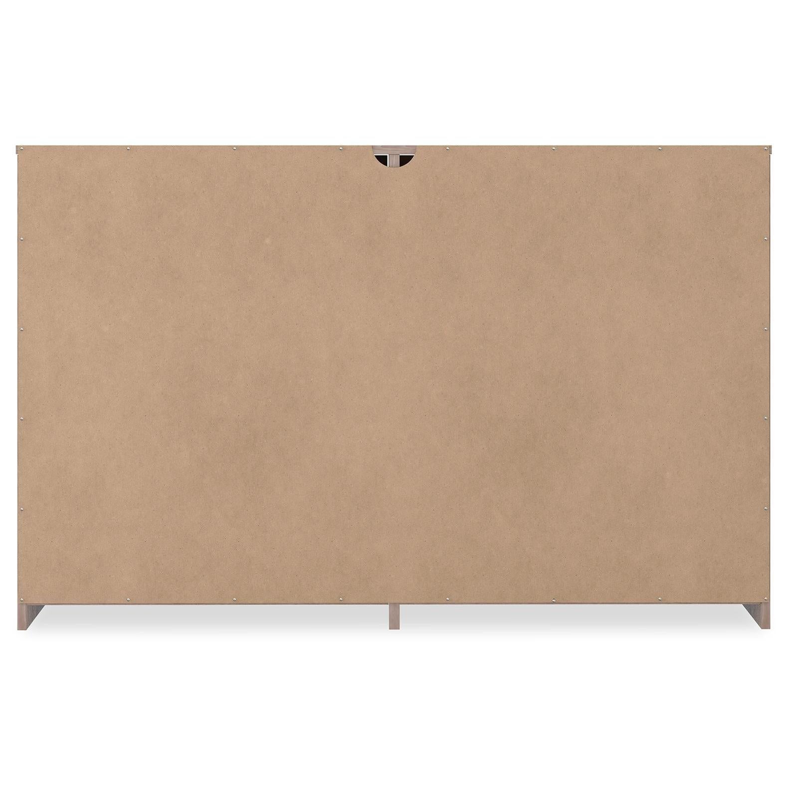If you're a fan of clean, crisp and contemporary interiors, rest assured this dresser suits you. The linear profile and flush-mount drawers are enhanced with a warm gray vintage finish with subtle pearl effect over replicated cherry grain. Large satin nickel-tone pulls are an artful touch. Hard to believe such a high-style aesthetic can be so attractively priced.