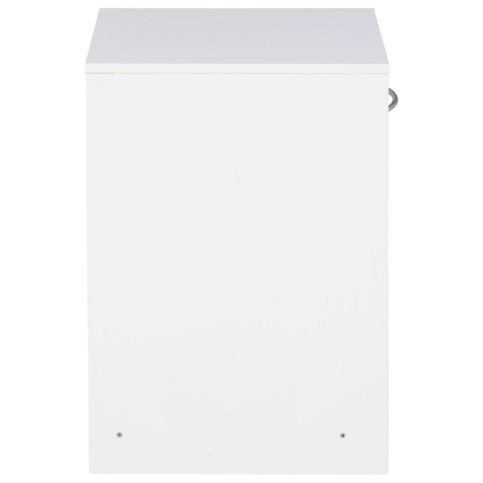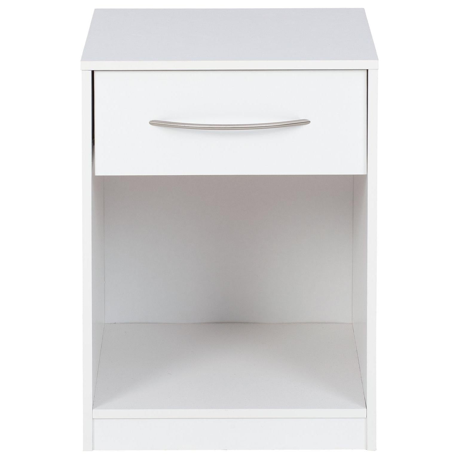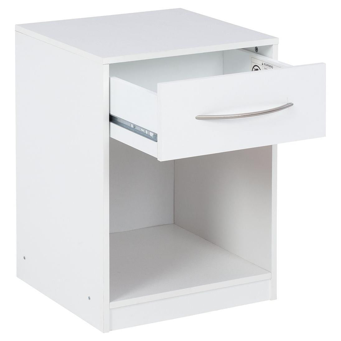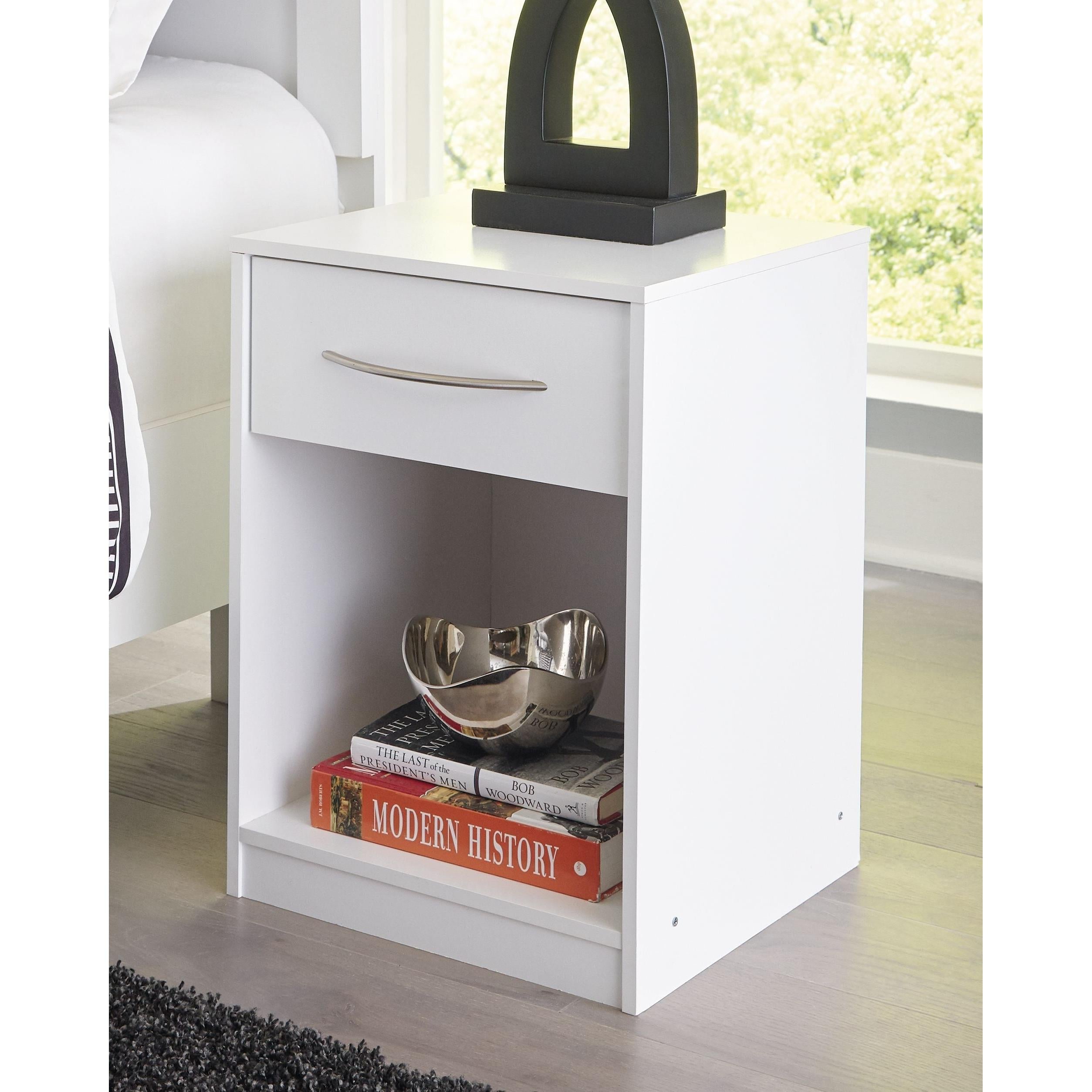 Practical and attractive, this nightstand blends seamlessly with modern decor and makes a smart addition to a bedroom. The smooth-gliding drawer on metal ball bearings is ideal for bedside essentials. Open cubby provides a nice place for a storage basket or vase. Curved metal pull in brushed nickel-tone finish adds to the streamlined aesthetic. Combine with other units in the collection to create a room that's sleek and stylish.