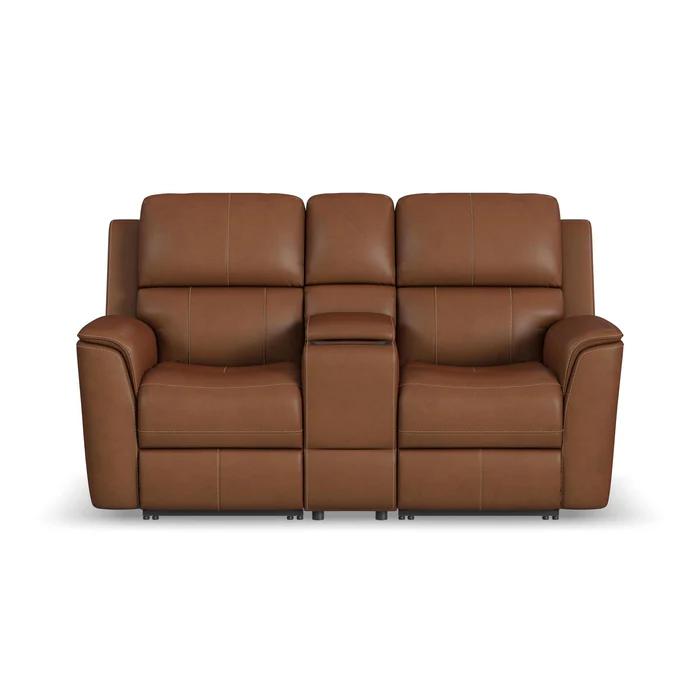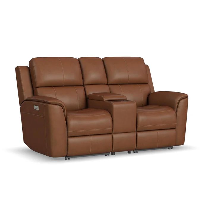 Flexsteel Henry Leather Power Reclining Loveseat with Console & Power Headrests & Lumbar in Caramel
