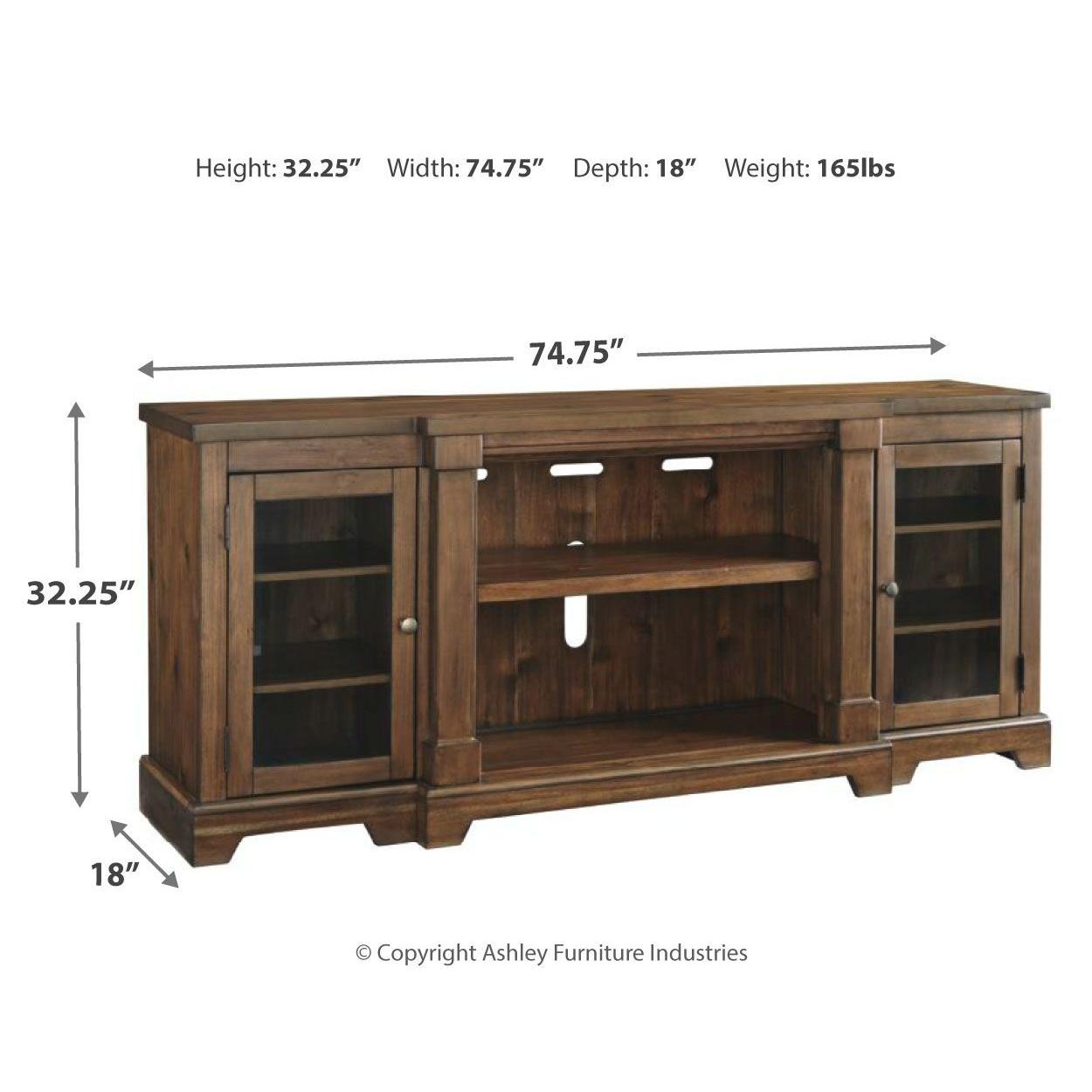 Sporting a clean-lined, hearty profile and complex chestnut-tone finish, this TV stand with optional fireplace brings home a richly rustic style that's warm and welcoming. Its large-scale design easily accommodates a 75" TV. If you really want to turn on the romance, opt for the optional electric fireplace insert (sold separately).