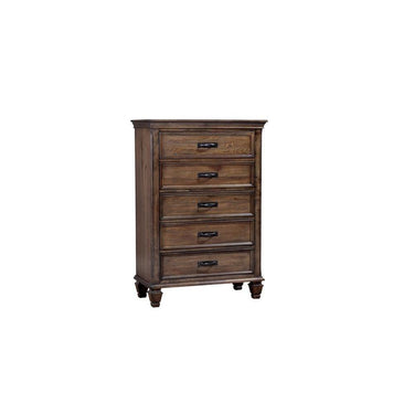 With self-closing drawer glides and plenty of storage space, this chest is a versatile bedroom upgrade. a lightly wire-brushed, twelve-step finish gives it a cool, rustic edge. sleek, bar-style drawer handles complete its classic look. with impeccable craftsmanship, it's built for sturdiness, stability, and strength. combine this chest with a matching bed, dresser, nightstand, and bench to complete a master bedroom in style.