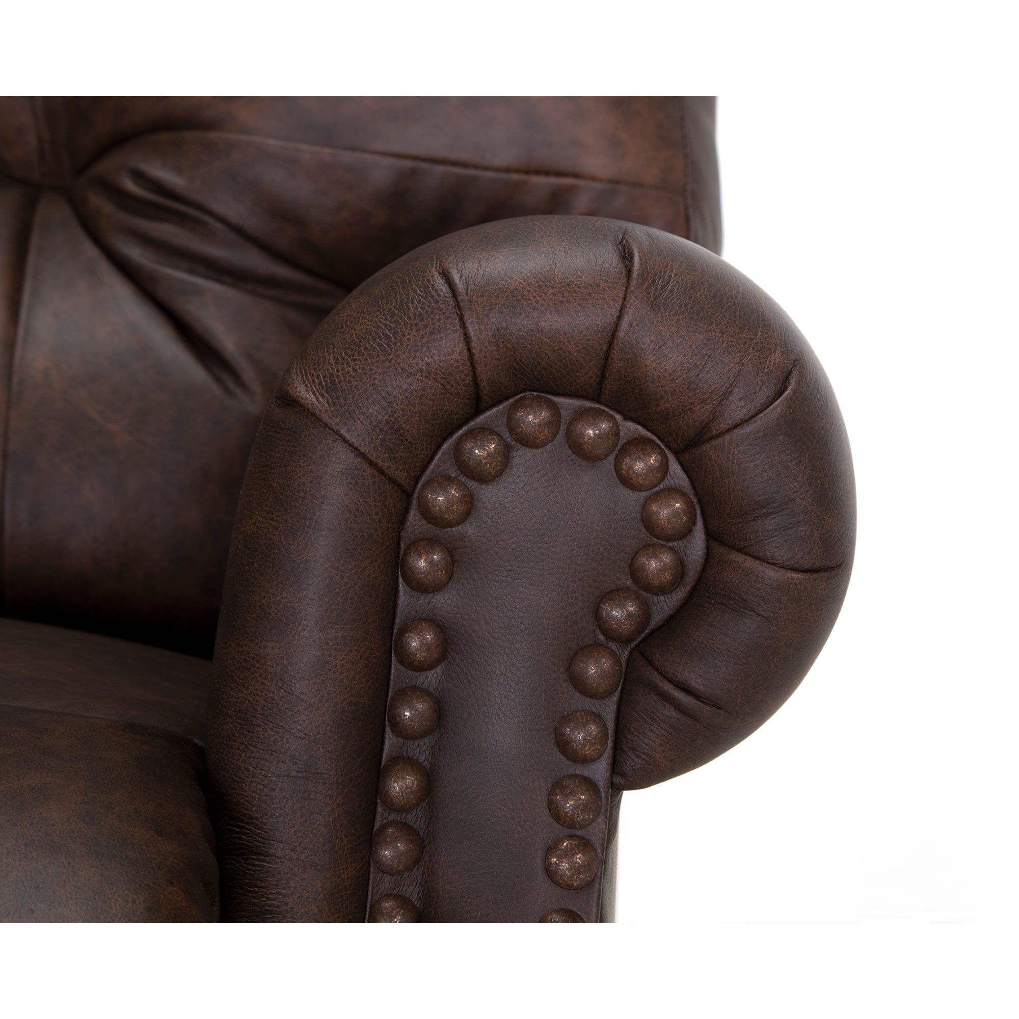 Designed with comfort and functionality in mind, the Austin is a power lift recliner features a three-way chaise lift and recline and can hold up to 350 lbs. With beautifully upholstered rolled arms accented with nailhead trim, this leather chair is where comfort meets style. All Franklin lift chairs come standard with a battery backup, designed to take you from full recline to an upright, closed position.