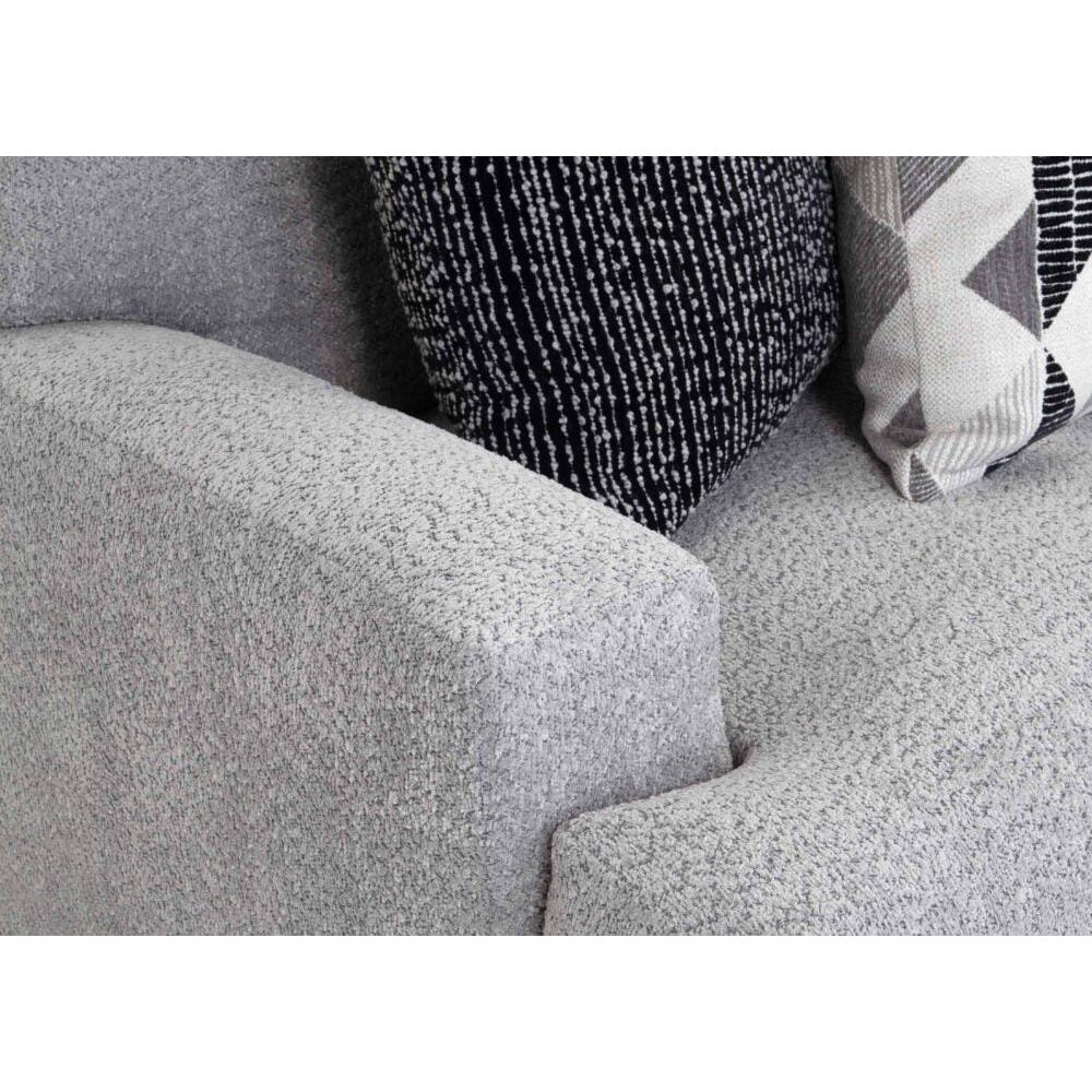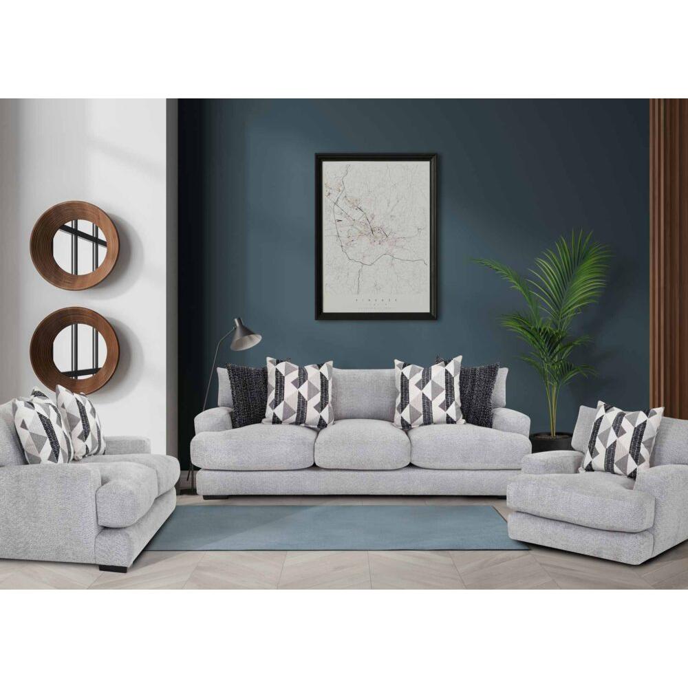 Say hello to the 803 Galaxy Sofa — where sleek style meets stellar comfort. Upholstered in a chic gray fabric, this standout piece features our exclusive WOW Seating System, combining precision-cut wood frames with gel-blended foam for lasting support and plush comfort. The reversible seat and back cushions allow for even wear, helping extend the life of your sofa. Accent pillows are included to complete the look. Whether you're lounging solo or hosting guests, the Galaxy Sofa delivers comfort that’s truly out of this world.