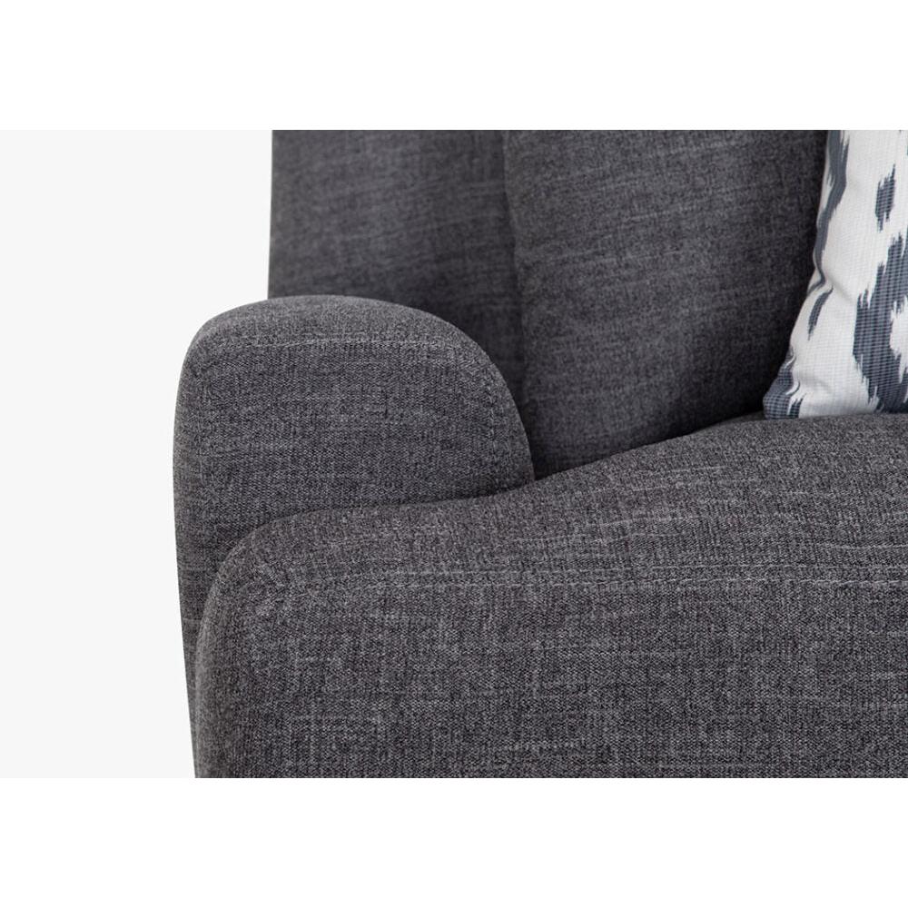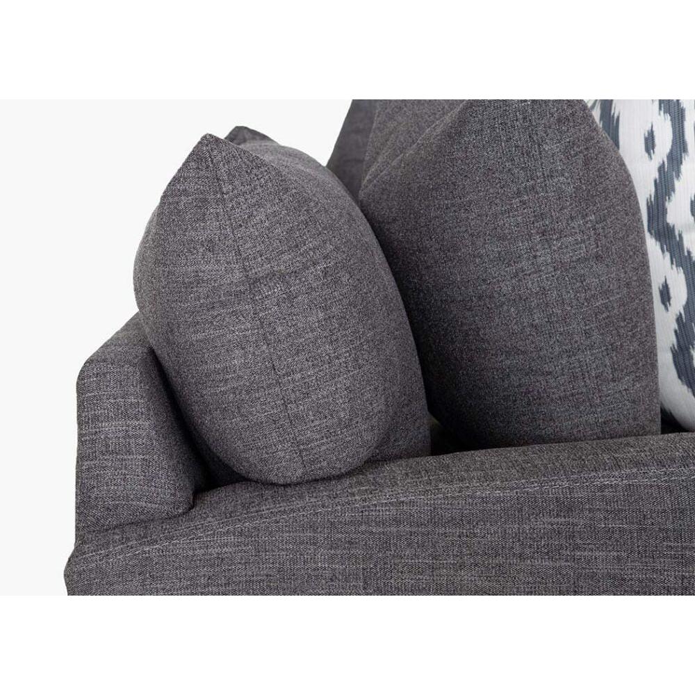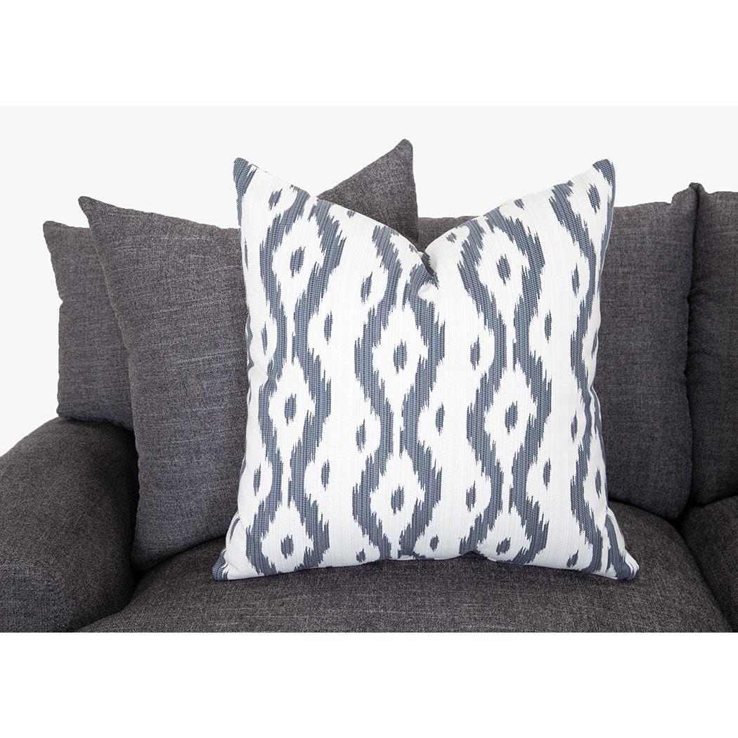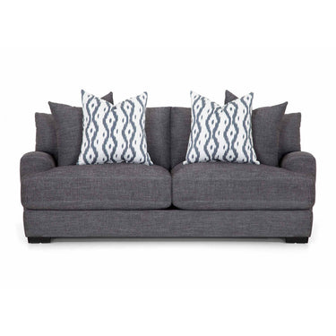 With its large-scale frame and deep seating, this group is ideal for those who love to lounge and unwind. The collection includes sofa, loveseat, matching chair and a half and ottoman. All pieces are upholstered in a soft, durable dark gray fabric, with coordinating throw pillows that add a visual contrast to complete the overall look.