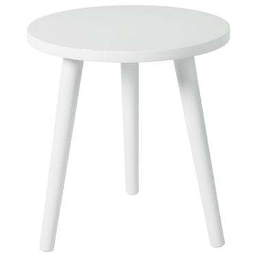 This small side table has a white circular top and three white wooden legs. It's ideal as a bedside table or lamp table in your living areas, bringing casual elegance to your home.