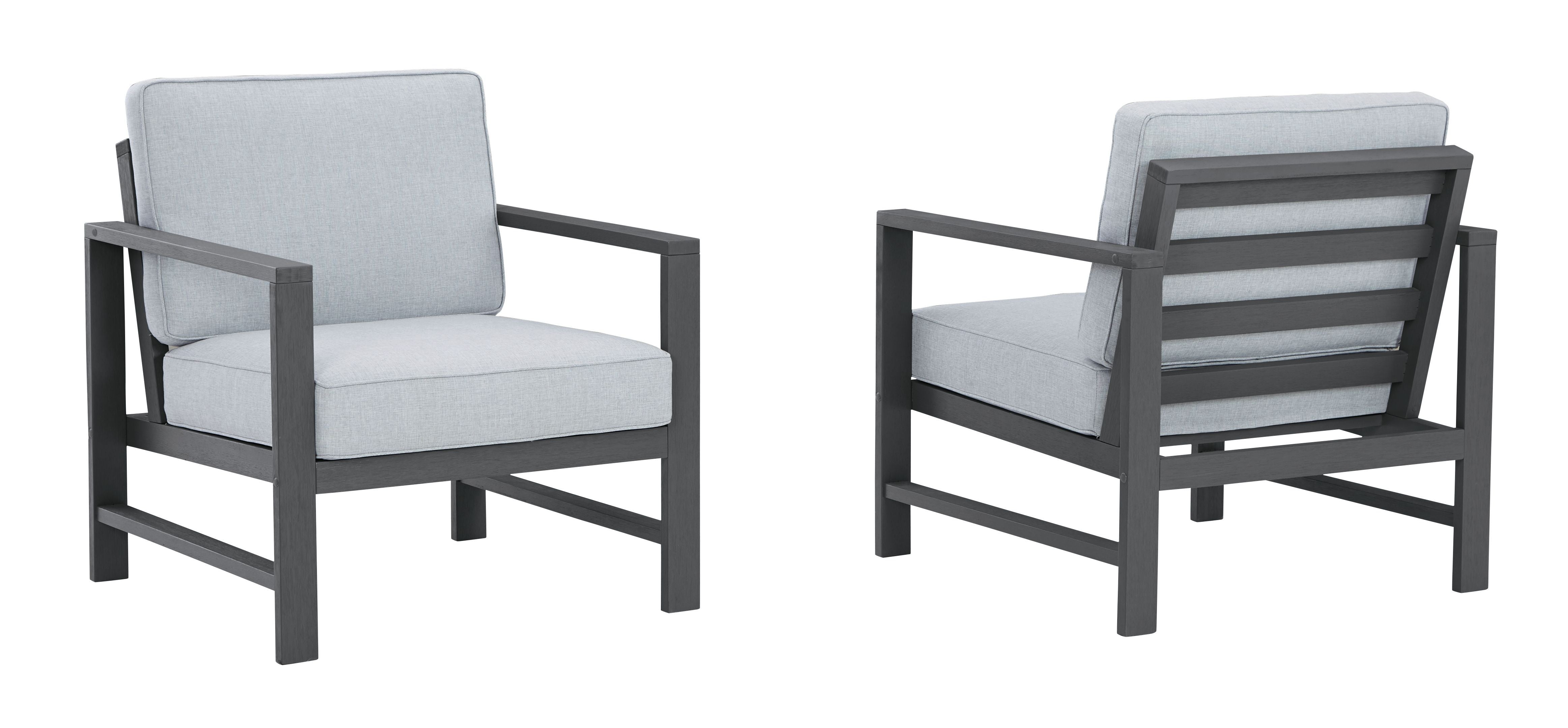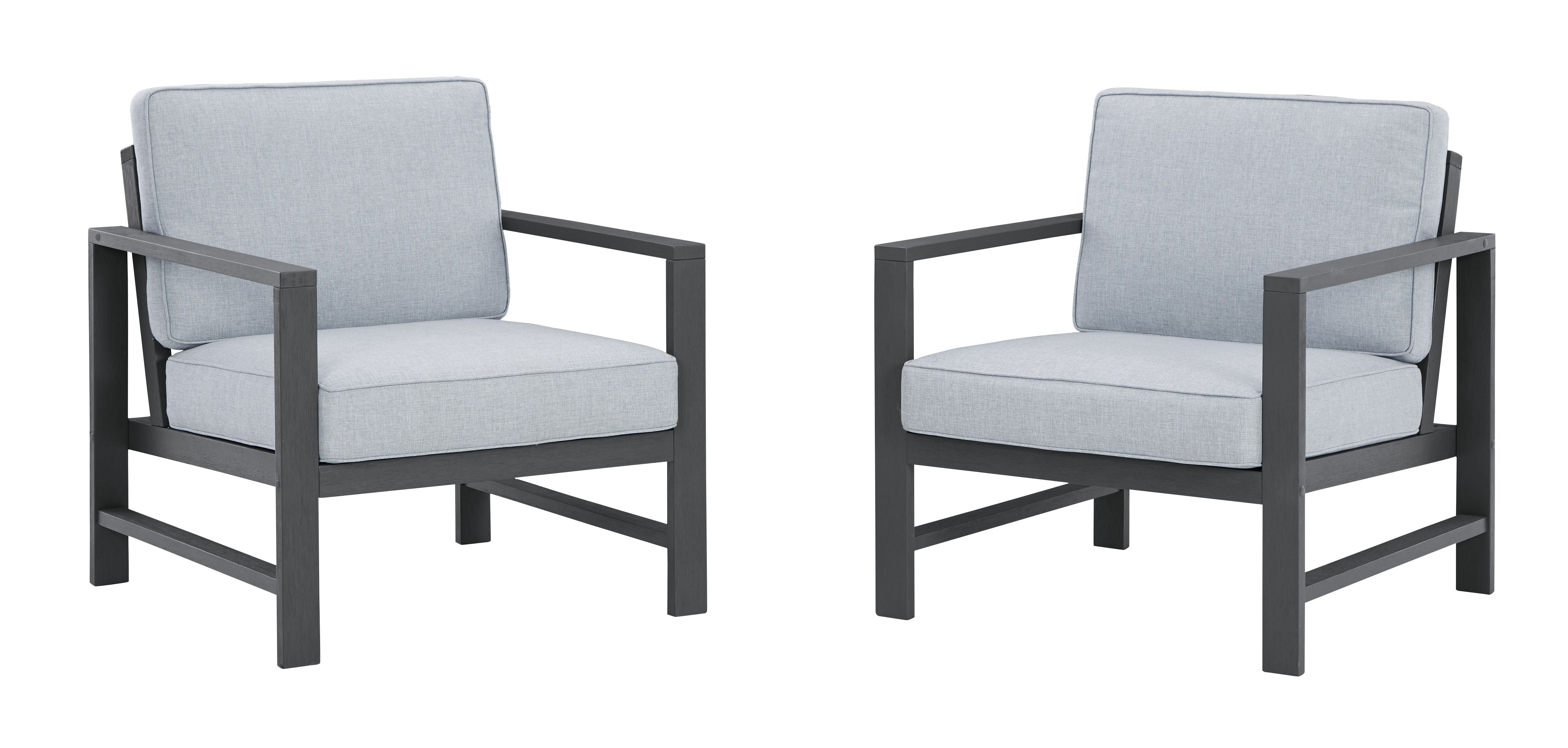 With its sleek lines, gorgeous gray tone and cushioned comfort, this 2-piece outdoor lounge chair set can make your outdoor space feel more like an upscale resort. Made for looks and longevity, this high-quality ensemble is built from eucalyptus wood treated to a deluxe embossed finish to brave the elements. The thick, all-weather seat cushions and back pillows are wrapped in a delightfully neutral Nuvella� fabric that's a breeze to clean.