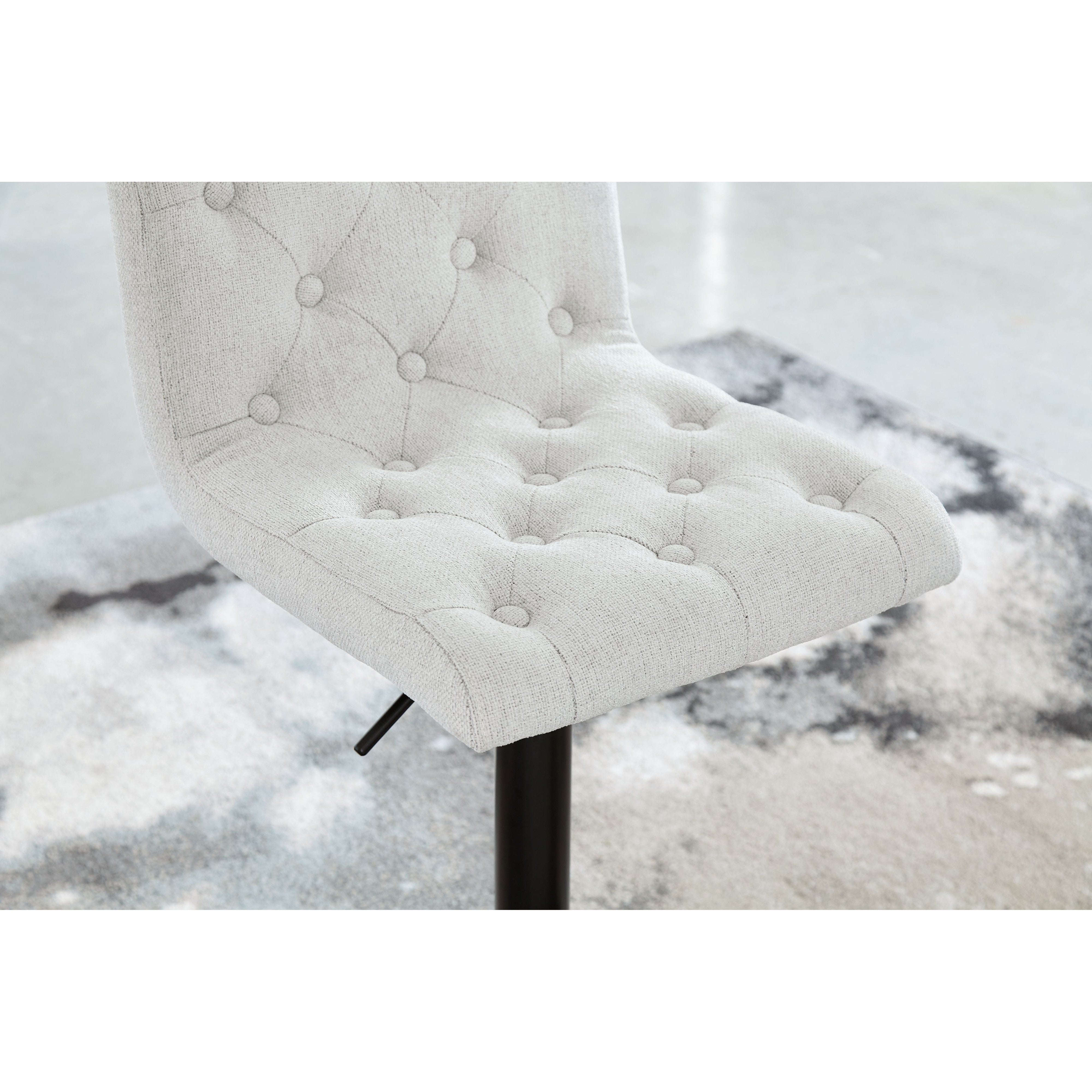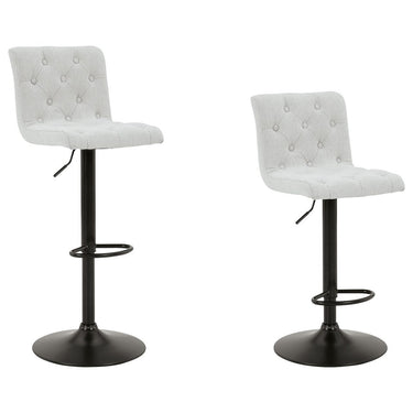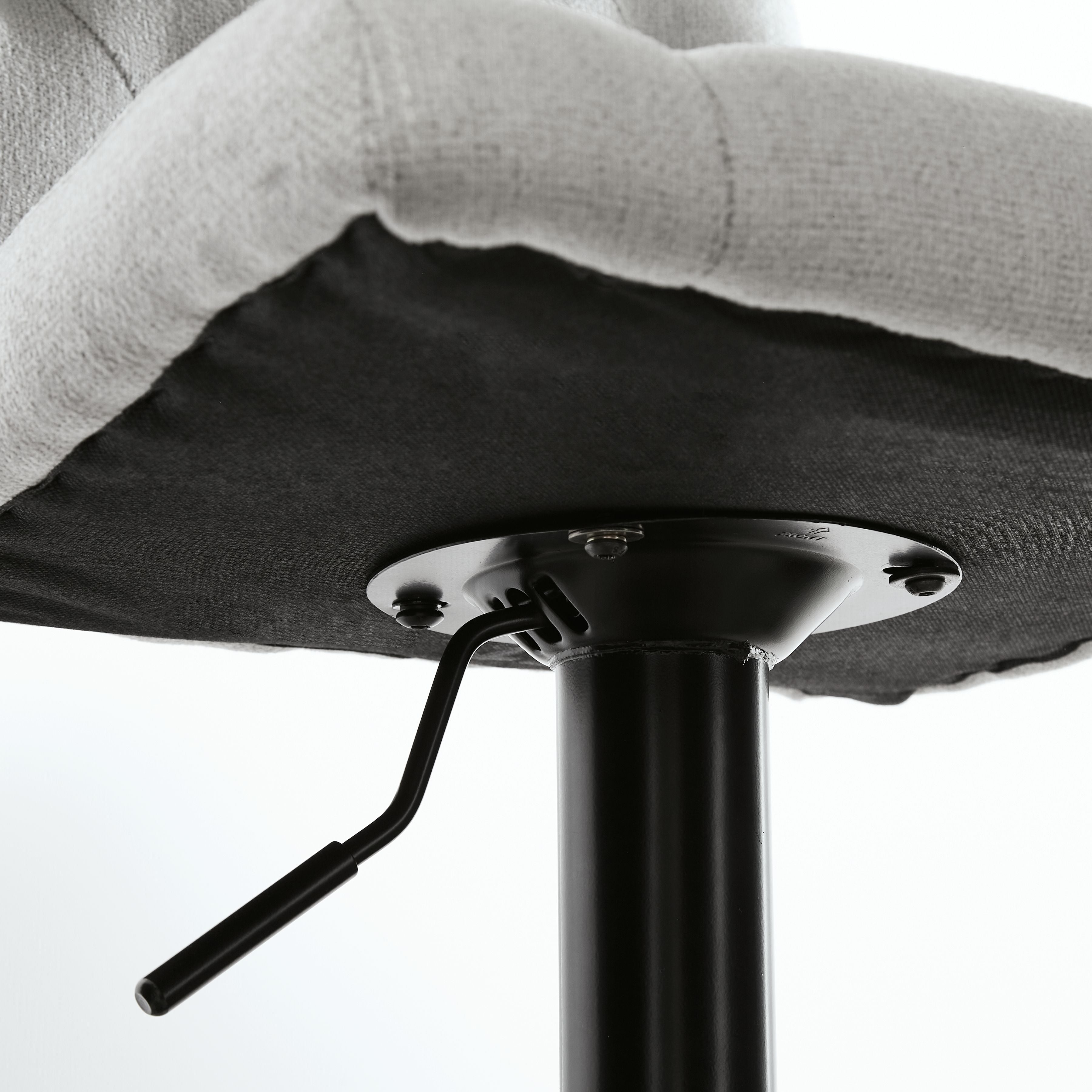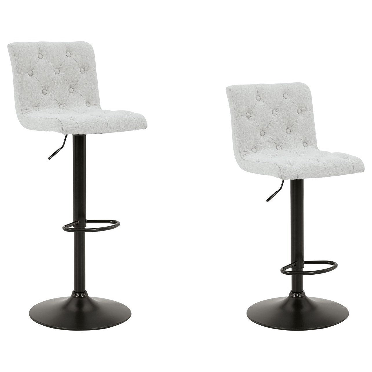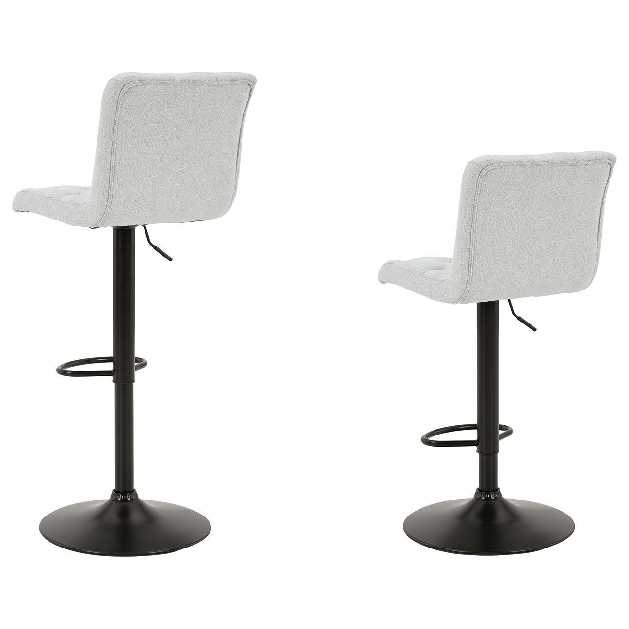 In search of a transitional design with desirable function? Look no further than this upholstered bar stool. Featuring tufted, light beige upholstery and a matte black base, it makes a simple-but-effective style statement. Full-circle swivel motion and an incorporated footrest make it easy to kick back and relax with guests. With an adjustable design that moves from counter to pub height with ease, this versatile stool is a must-have.