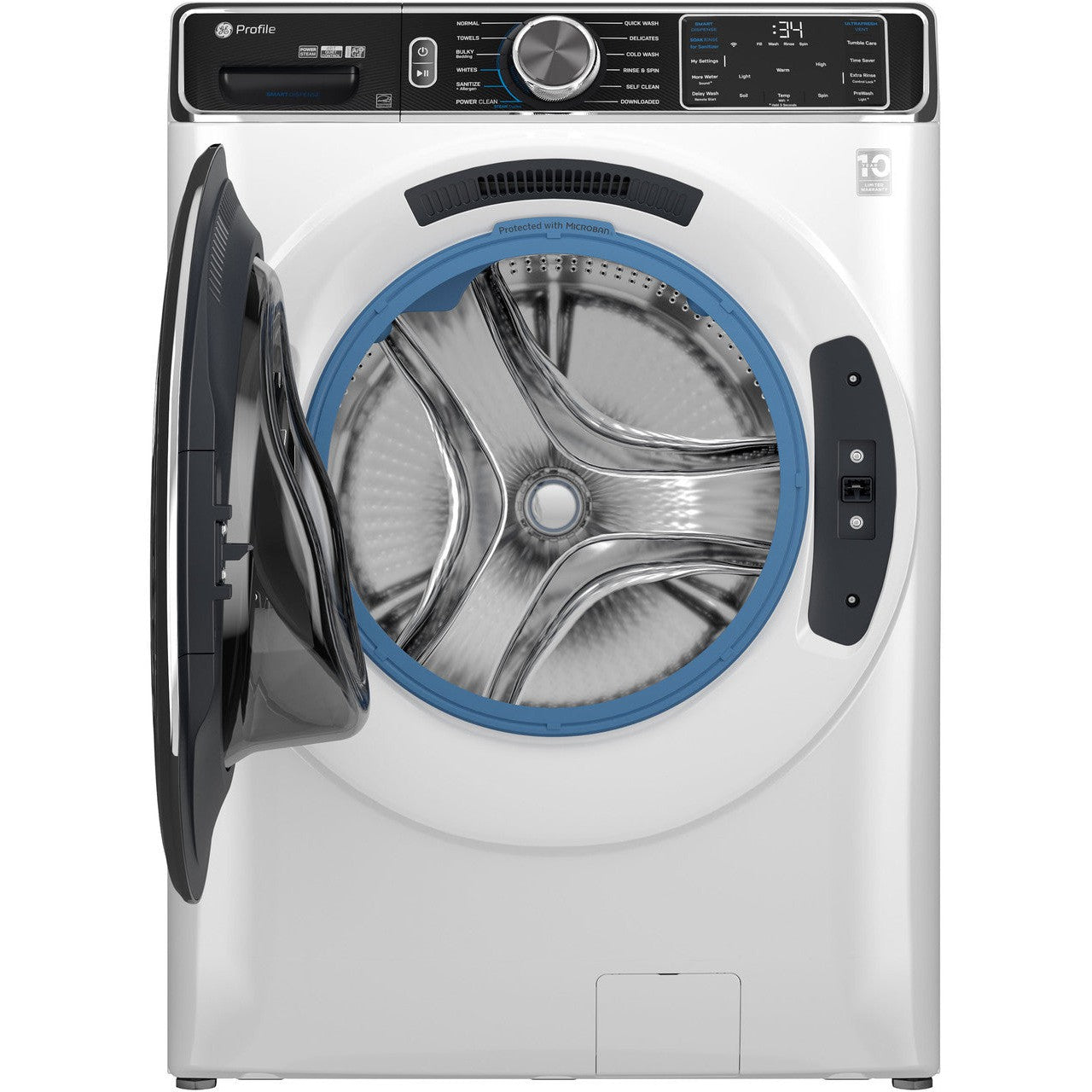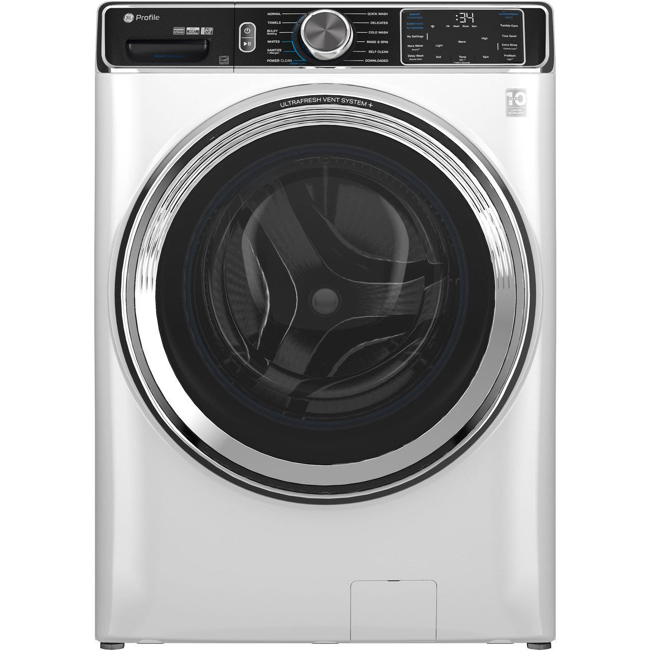 GE Profile - 5.3 Cu. Ft. Stackable Smart Front Load Washer with Steam and UltraFresh Vent System+ With OdorBlock - White