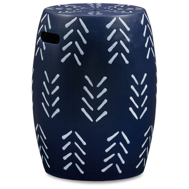 Freshen up your decor with the striking design of this stool. A navy and white pattern plays up the piece's visual appeal, while hand holds on the sides and a drain opening on top provide modern functionality. Suiting both indoor and outdoor spaces, this stool brings a subtle flourish of style to your contemporary sanctuary.