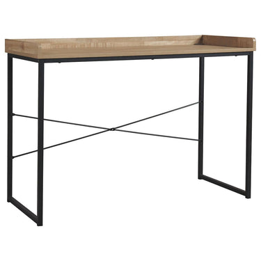 Make a bold statement in a compact footprint with this high-style desk. The striking contrast of its light wood-tone top and sleek black metal frame is so dramatic. Three-sided gallery rail is crafted for form and function.