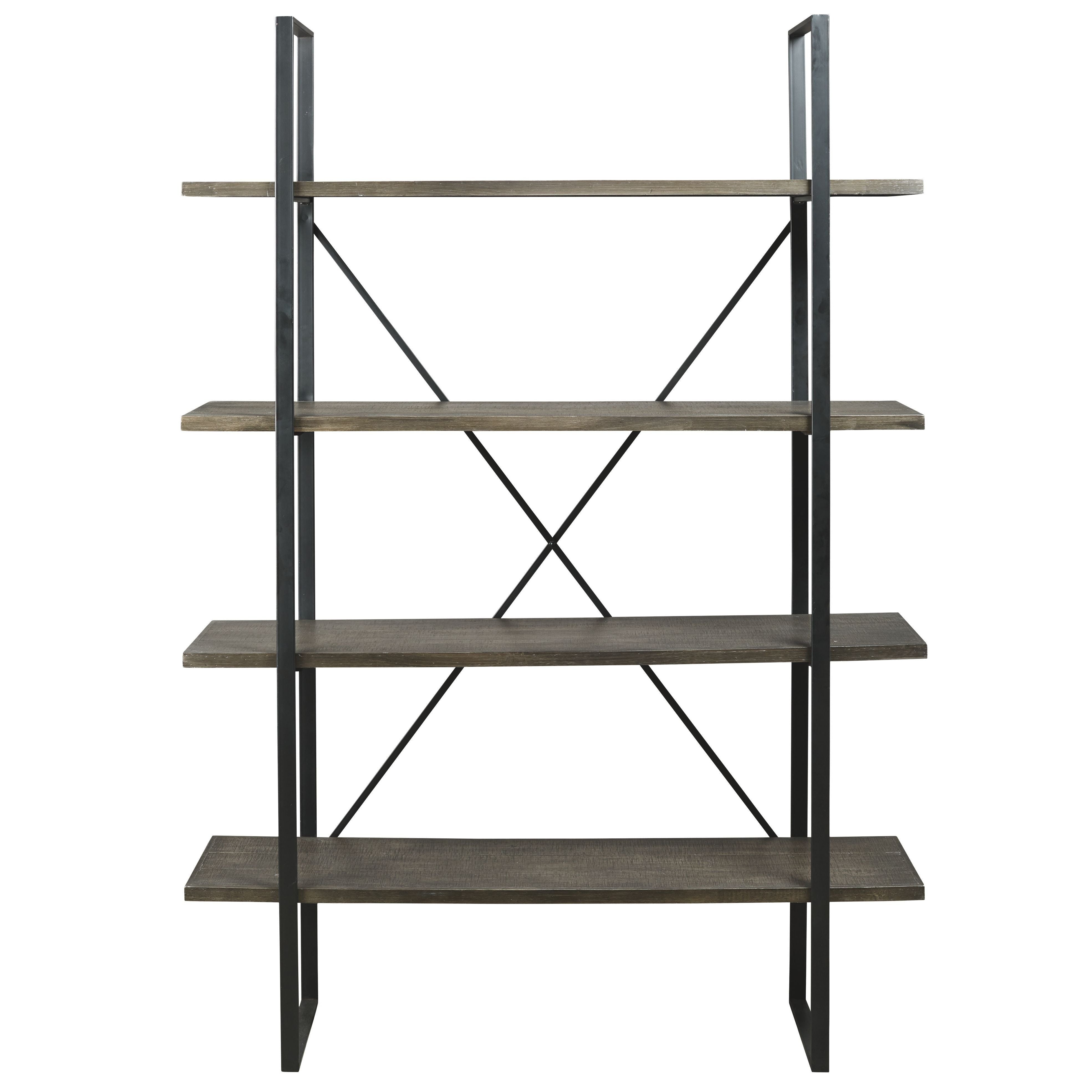 Got books? Bring them to this bookcase. Industrial mix of dark wood and black metal brings trendsetting vibes to your home. Four sturdy shelves hold your belongings with ease. Mix in some metallic decor for a home office look you can't refuse.