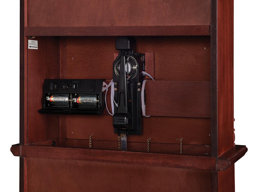 Enjoy a classic with a twist. given a mid-height build, this grandfather clock celebrates a beloved icon in a compact space. artistic detailing embellishes its storied profile, offering a lovely upgrade to a traditional room or hallway. with a brown-red finish, it creates a warm, glowing palette. enjoy romantic westminster clock chimes at regular intervals.