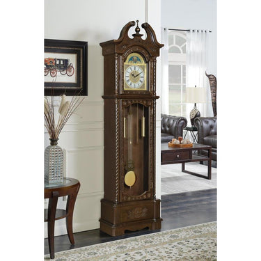 Recreate the romantic aesthetic of past eras. standing tall and offering a classic look, this grandfather clock becomes a focal point in any space. with a gorgeous brown finish, it delivers versatility to blend with almost any palette. enjoy the beloved tradition of westminster clock chimes at regular intervals. this elegant clock features a movement powered by batteries.