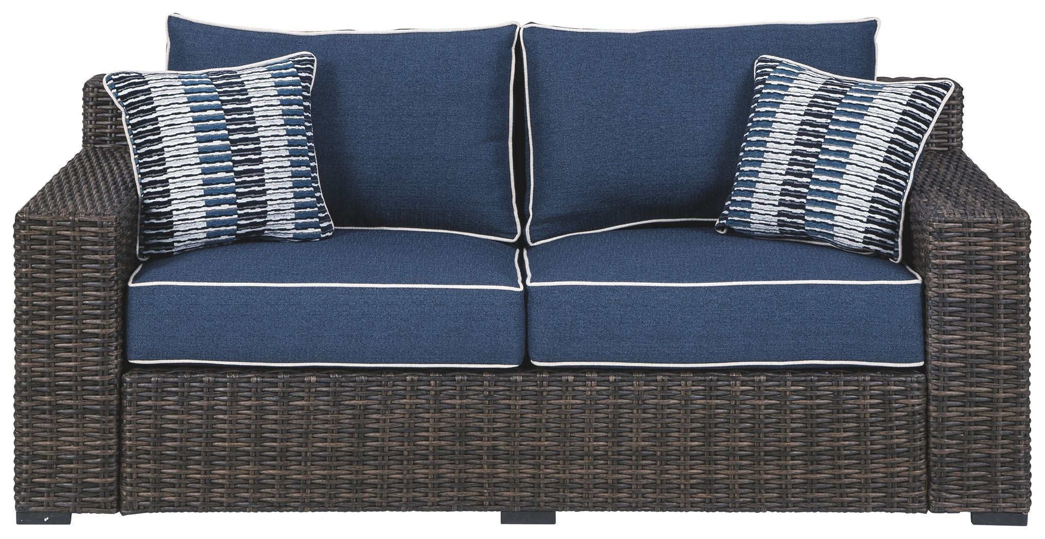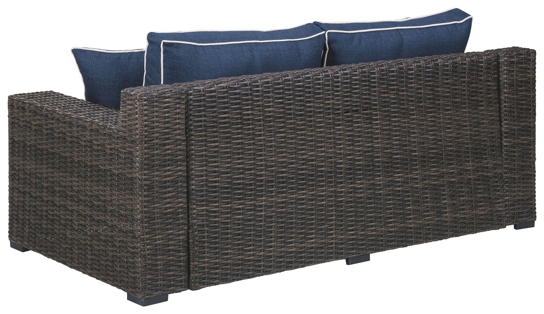Style. Comfort. Quality. Value. This loveseat with cushion really goes to town, giving you the total package for outstanding outdoor living. Crafted to withstand the elements, this outdoor loveseat's resin wicker base and rust-proof aluminum frame ensure carefree living, while the plush cushion covered in fade-resistant Nuvella� fabric provides stylish appeal. Comfy and casual, it's perfect for use inside or out.