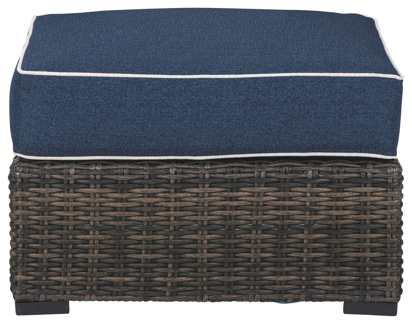 Style. Comfort. Quality. Value. This ottoman with cushion really goes to town, giving you the total package for outstanding outdoor living. Crafted to withstand the elements, this outdoor ottoman's resin wicker base and rust-proof aluminum frame ensure carefree living, while the plush cushion covered in fade-resistant Nuvella� fabric provides stylish appeal. Comfy and casual, it's perfect for use inside or out.